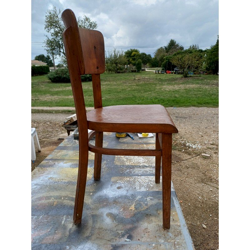 1 Chaise de Bistrot Thonet Czechoslovakia Haut : 82 cm , Haut d'assise : 47 cm , long et larg : 42 cm sur 37 cm , poids : 3,6 Kg , trés bon état sauf un manque de plaquage sur le siége en bas a droite , voir 5 éme  photo