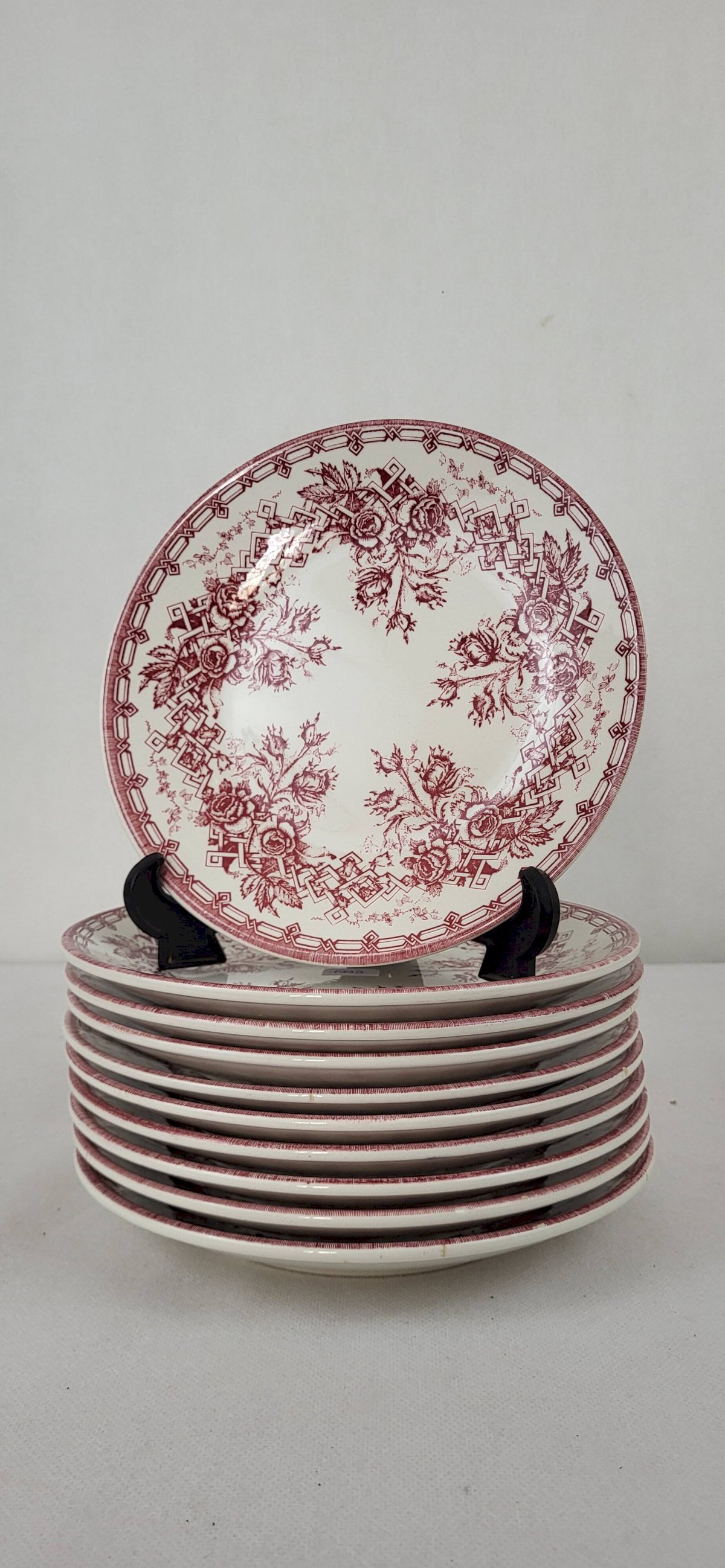 10 assiettes à dessert en faïence de Sarreguemines / Style anglais.Diamètre 18, 7 cm.Elles sont toutes en bon état.Emballage soigné et livraison rapide.Traces d'usage et d'ancienneté normales.