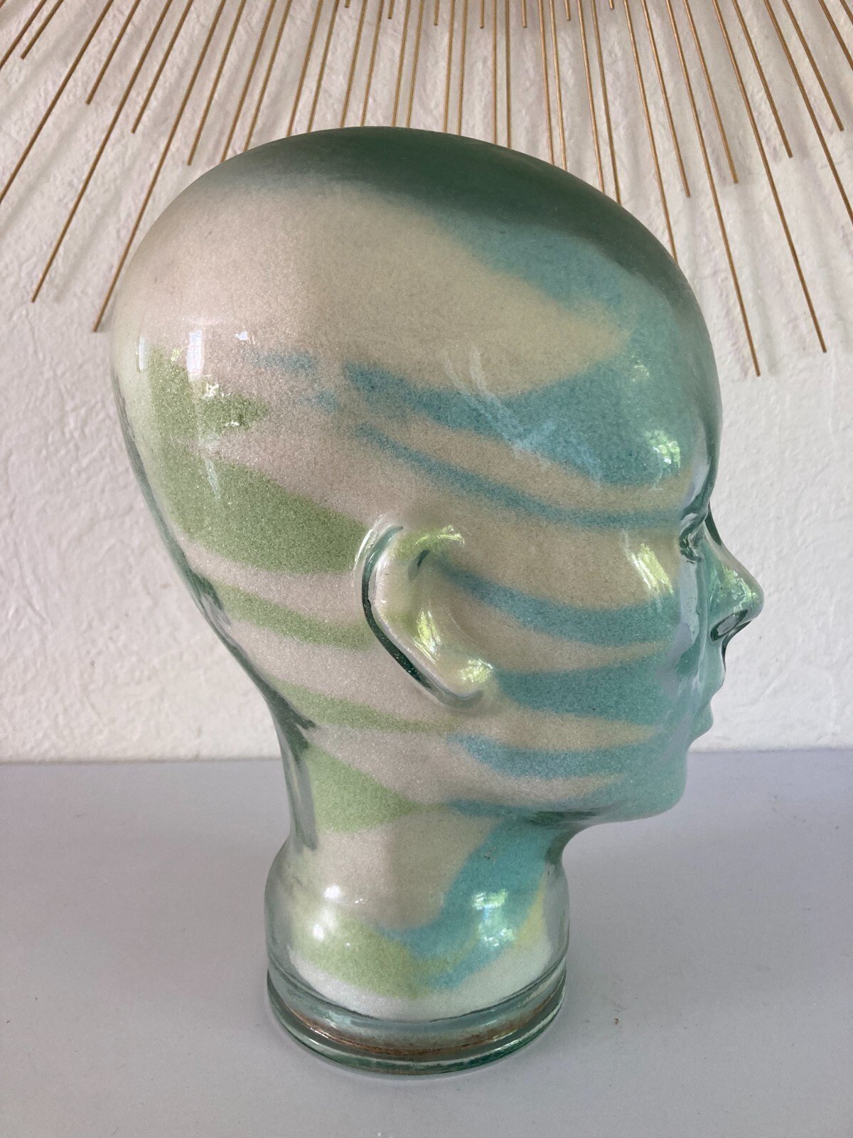 1024⚜️ Ancienne Tête en Verre Sels de Mer Tête Décoration Hauteur 29 Cm Vintage