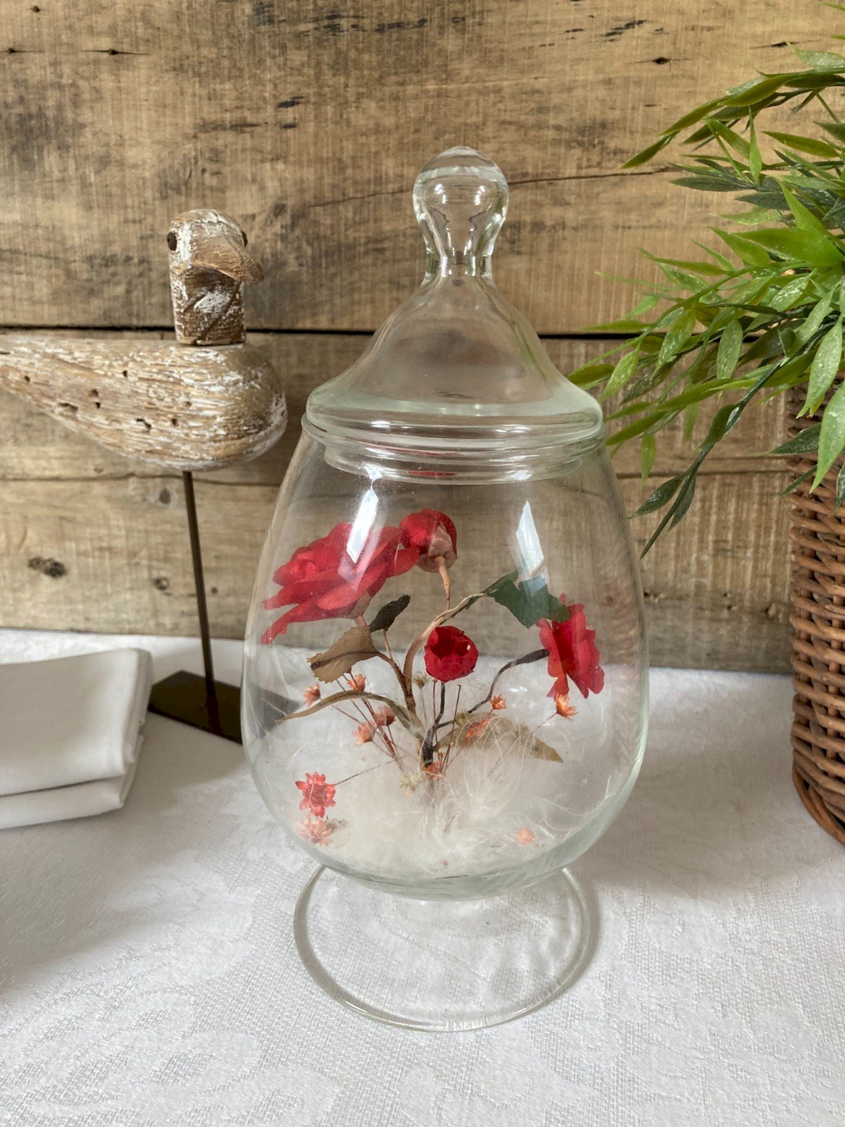 1125⚜️ Décoration Ancien Vase Fleurs Artificiel en Verre Vintage Hauteur 23 Cm