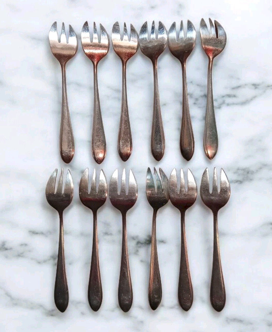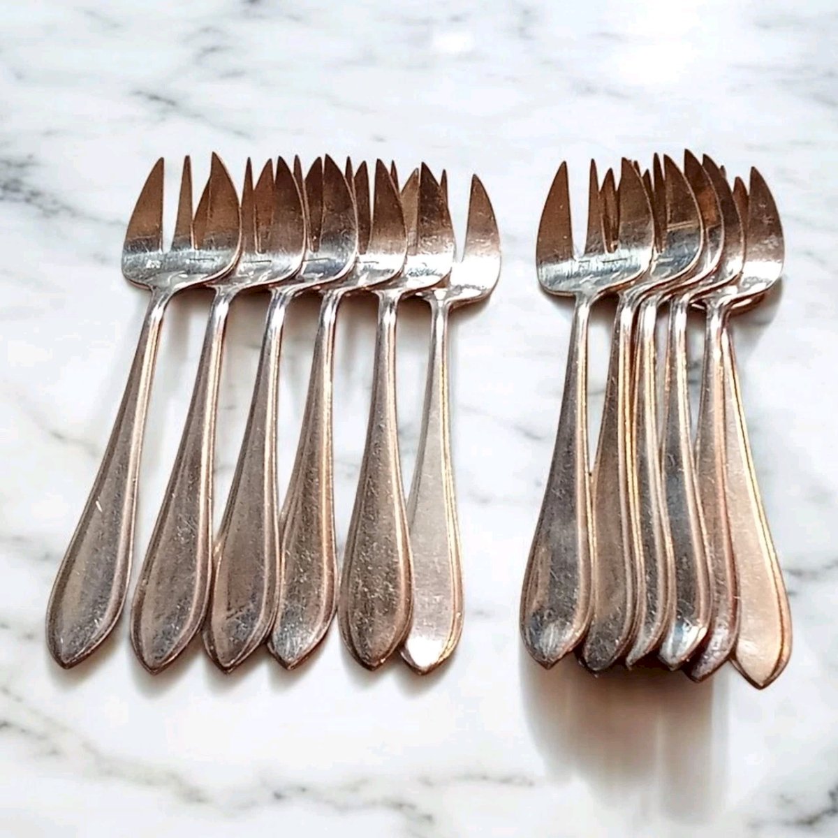 12 Anciennes petites fourchettes couverts huîtres Orfèvre Ercuis Métal Argenté