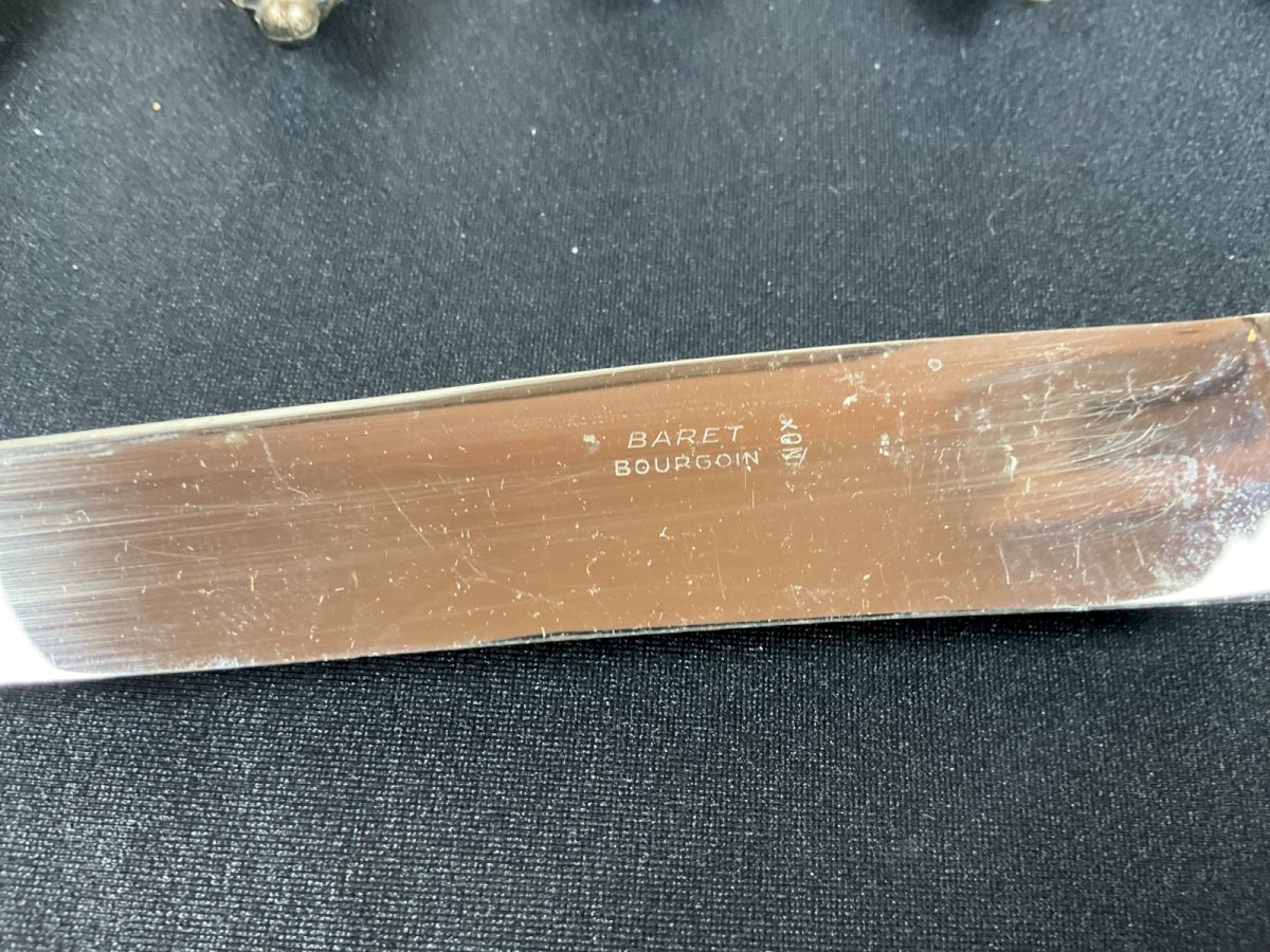 12 couteaux virole argent .orfèvre BARET Longueur : 26 cm Authenticité:Original Marque:baret Type:Arts de la table, Cuisine Origine:France Sous-type:Couteau Matière:Bois