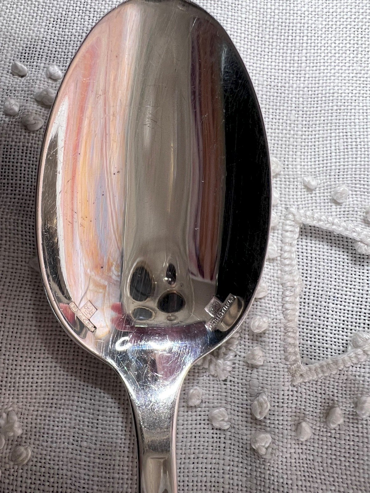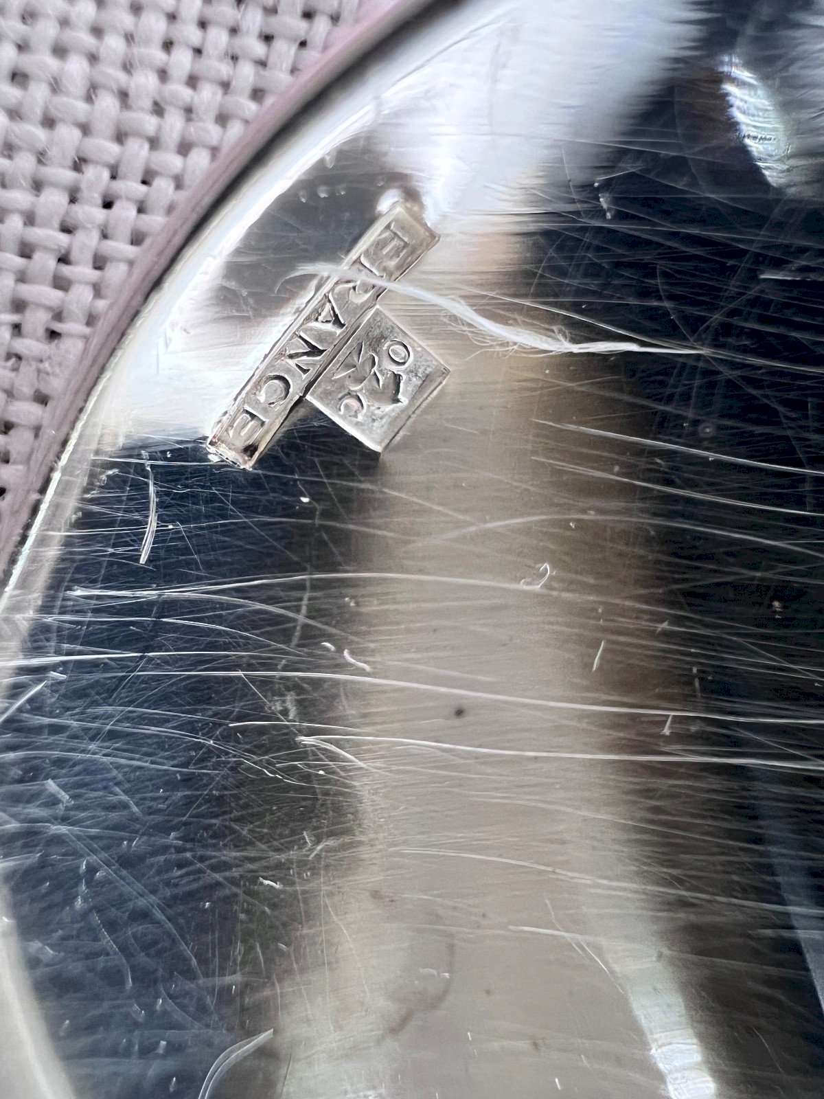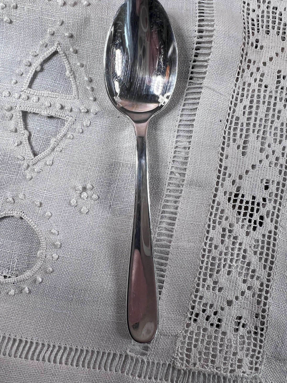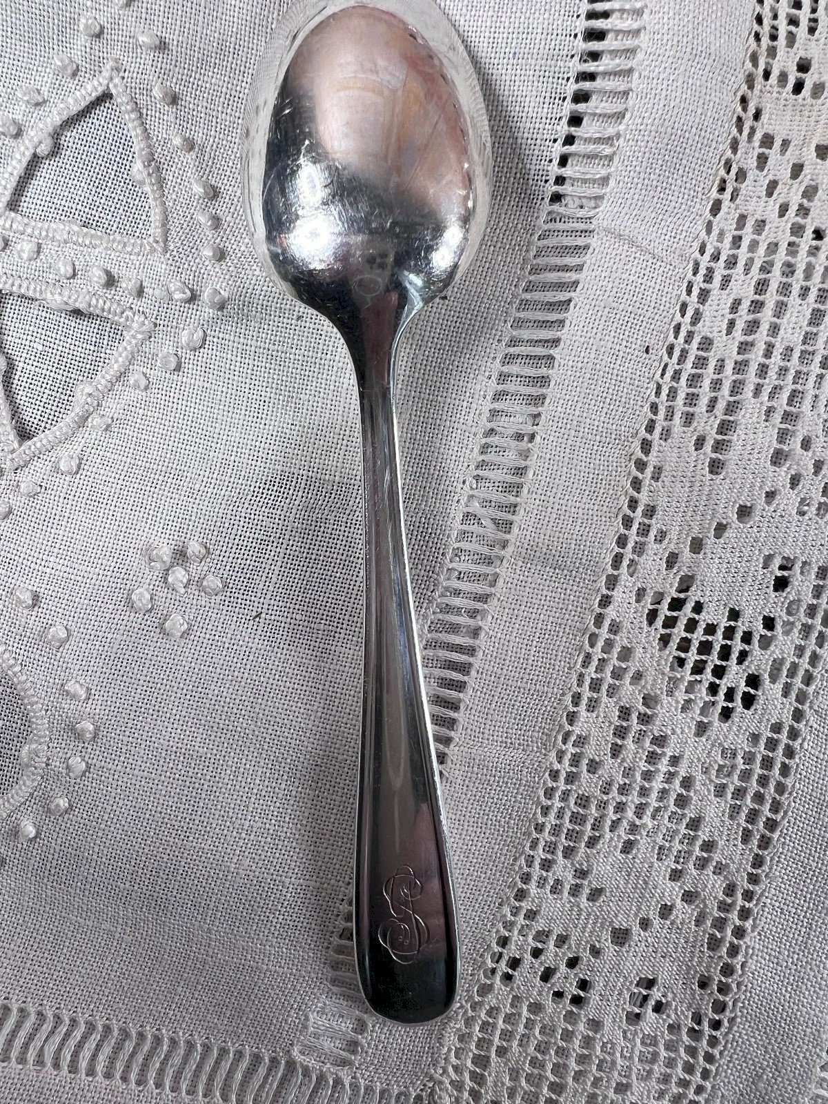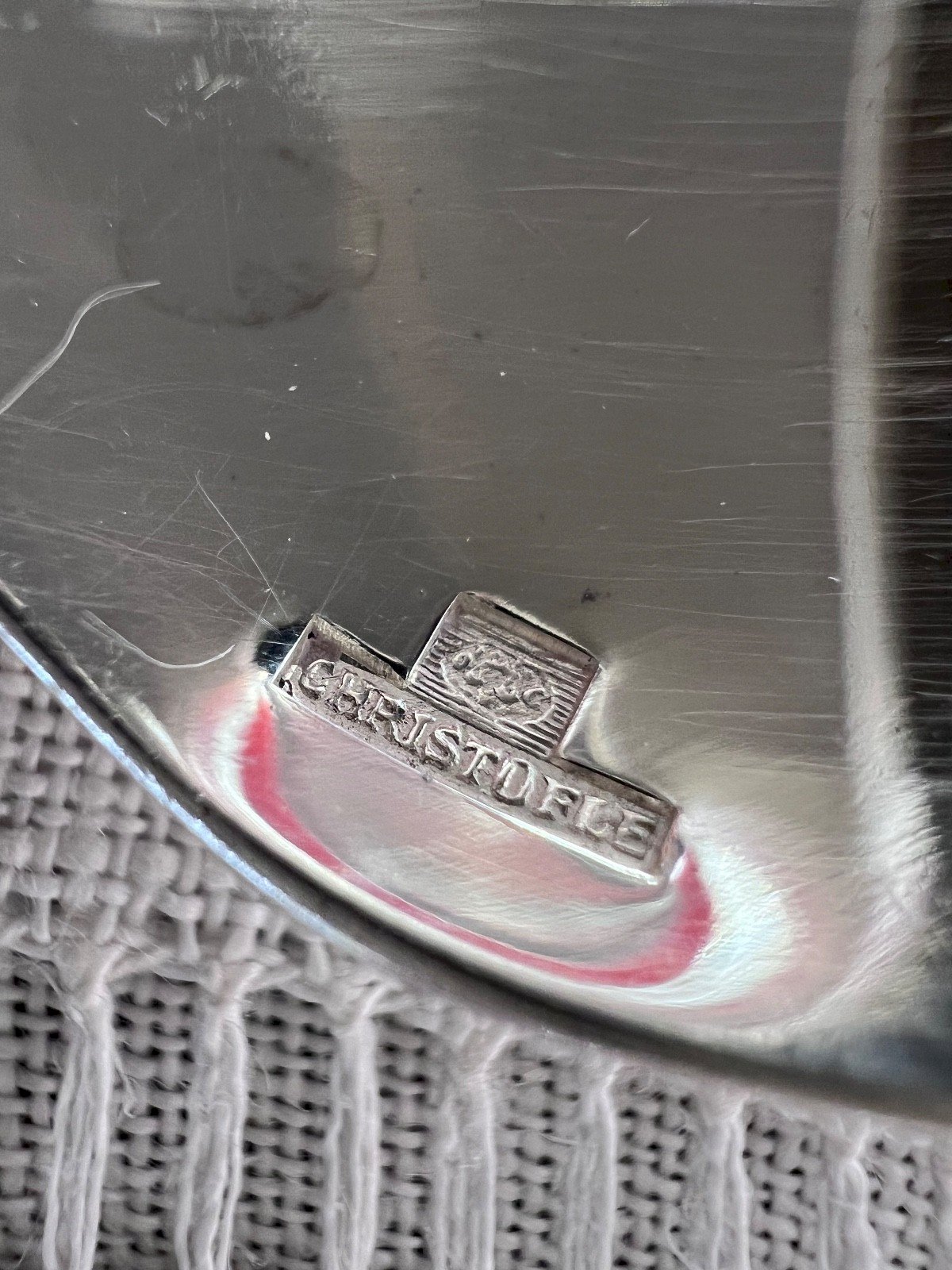 Ensemble de 12 petites cuillères anciennes de la maison Christofle , grande référence de l’orfèvrerie française et de l’art de la table. Ces cuillères appartiennent au même modèle que les couteaux et fourchettes Christofle proposés séparément et forment un ensemble harmonieux , idéal pour compléter un service élégant et cohérent. Caractéristiques Métal argenté de qualité Christofle Monogramme finement gravé (lettre « S » ) Poinçons Christofle visibles Ligne sobre et équilibrée, typique du milieu du XXᵉ siècle État Bel état d’usage avec patine ancienne et micro-rayures normales liées au temps. Aucune déformation. Dimensions Longueur : 13,2 cm (≈ 5.2 inches ) Modèle ? Parfaitement assorties aux couteaux et fourchettes du même ensemble (voir mes autres annonces). Expédition Envoi soigné, emballage sécurisé, expédition suivie. Envoi international possible. Type:Arts de la table, Cuisine Marque:Christofle Origine:France Période:Art Déco Sous-type:Cuillère Pays d'origine:France Matière:Métal argenté