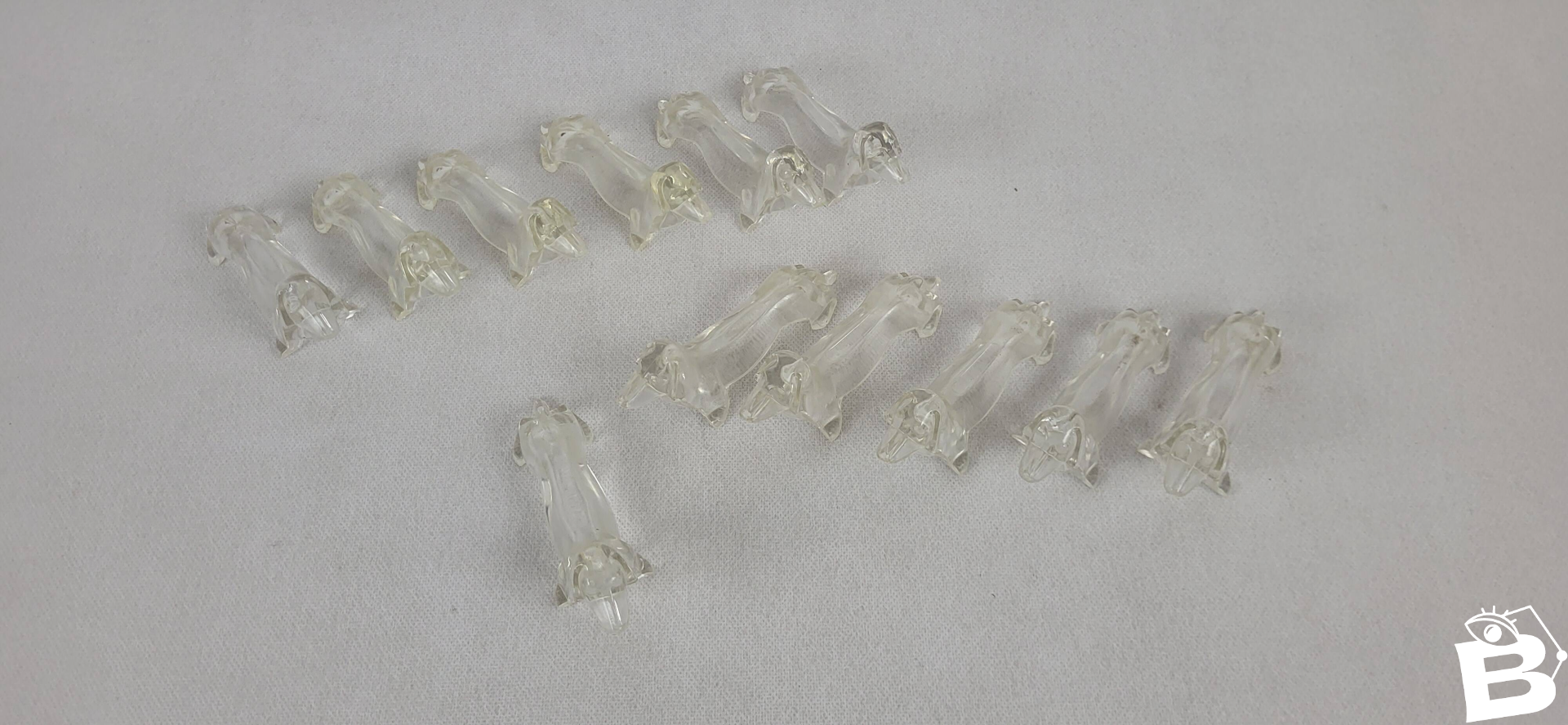12 porte-couteaux teckel en plastique 1970 Transparent