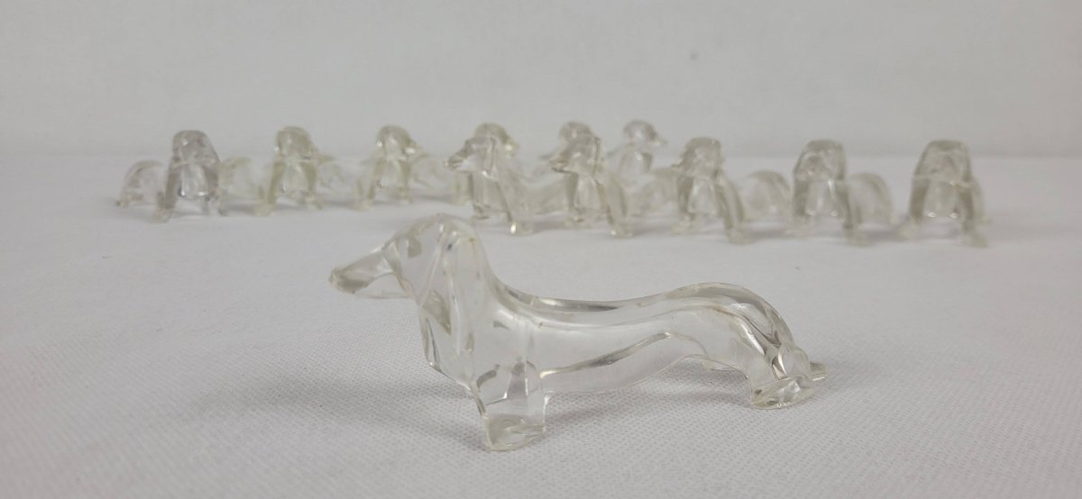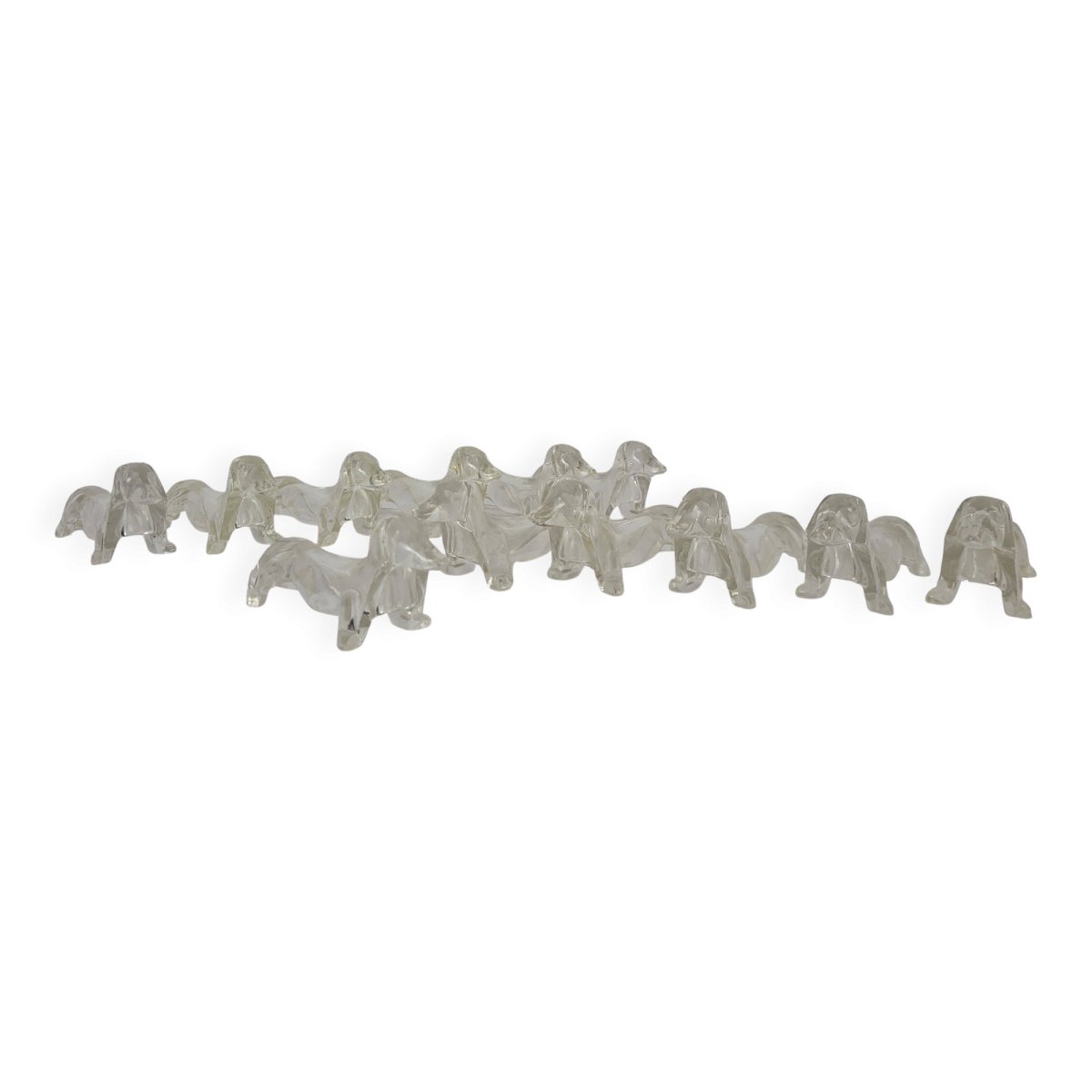 Lot de 12 portes couteaux chien Teckel Basset 1970 Vintage Plastique Incolore