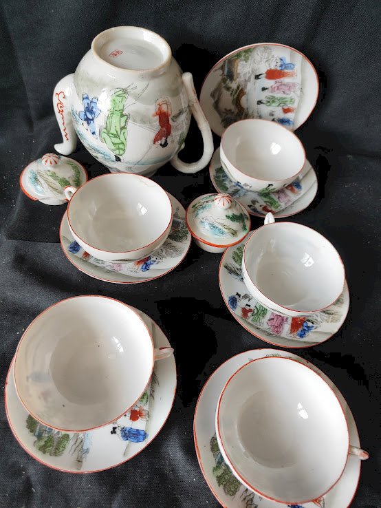 1930/50 Japon / 1 théière /5 tasses /6 soucoupes /porcelaine Illustration