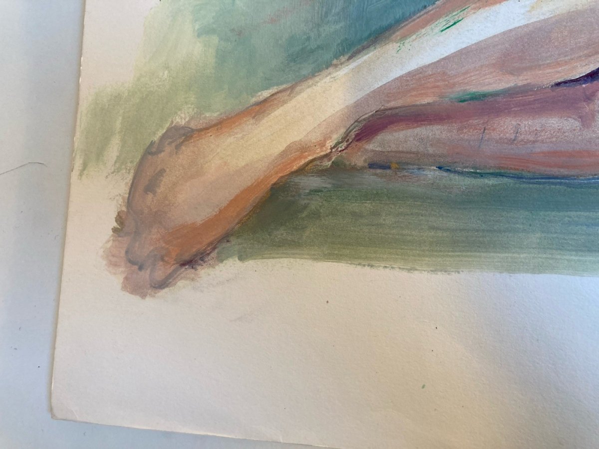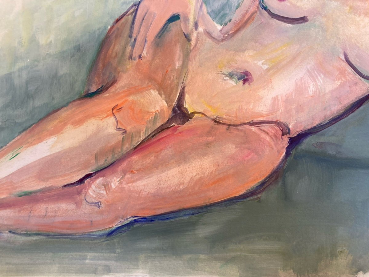 1970 Peinture Gouache Art Corps Nu Nue Femme Erotique A Identifier