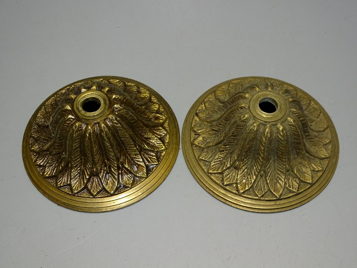 2 Plafonniers, Rosaces de lustre en Bronze style empire - dans leur jus de trouvailles, sortis de grenier, à nettoyer (voir photos) - Réf. 1V251219/99 - Diamètre 10 cm - Diamètre trou 1,08 cm - Poids 0,583 kg - Pour me contacter mon adresse mail : EXPEDITION POSSIBLE EN MONDIAL RELAY ou COLISSIMO sur demande TRES BON EMBALLAGE GARANTI MERCI de BIEN REGARDER TOUTES les PHOTOS car ELLES FONT PARTIE INTEGRANTE de la DESCRIPTION et PERMETTENT de VOIR l'OBJET AU MIEUX avec SES PETITS DEFAUTS EVENTUELS - Pays d'origine:France Matière:Bronze