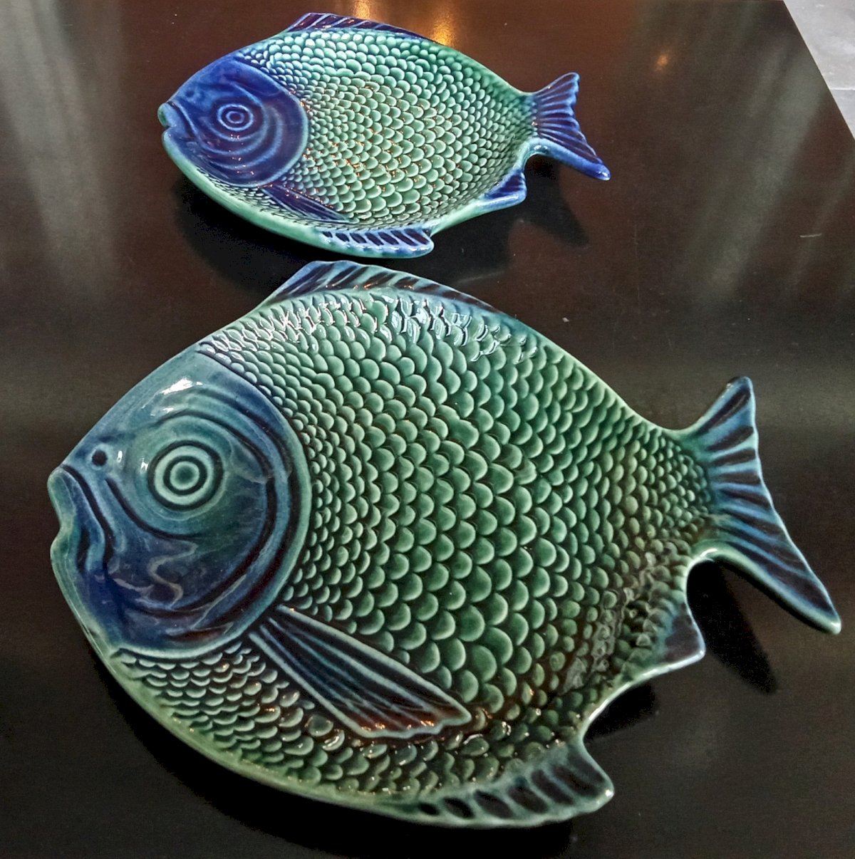 2 Anciens Plat Coupelle Vide Poche Ceramique Vintage Forme Poisson Old Fish