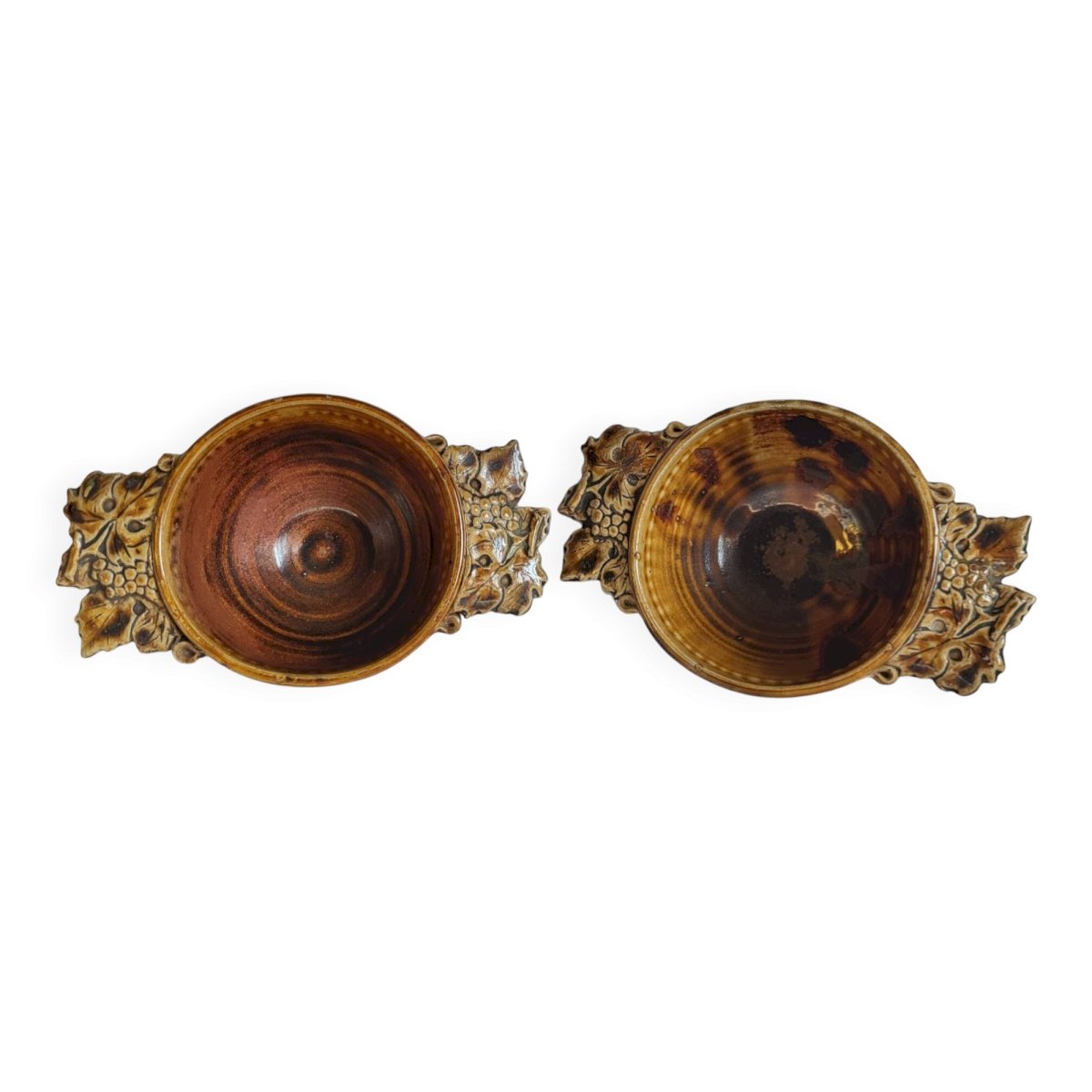 2 bols à oreilles en grès / En forme de grappe.Hauteur 8 cm.Diamètre 13 cm.Largeur 21 cm.En bon état.Emballage soigné et livraison rapide.