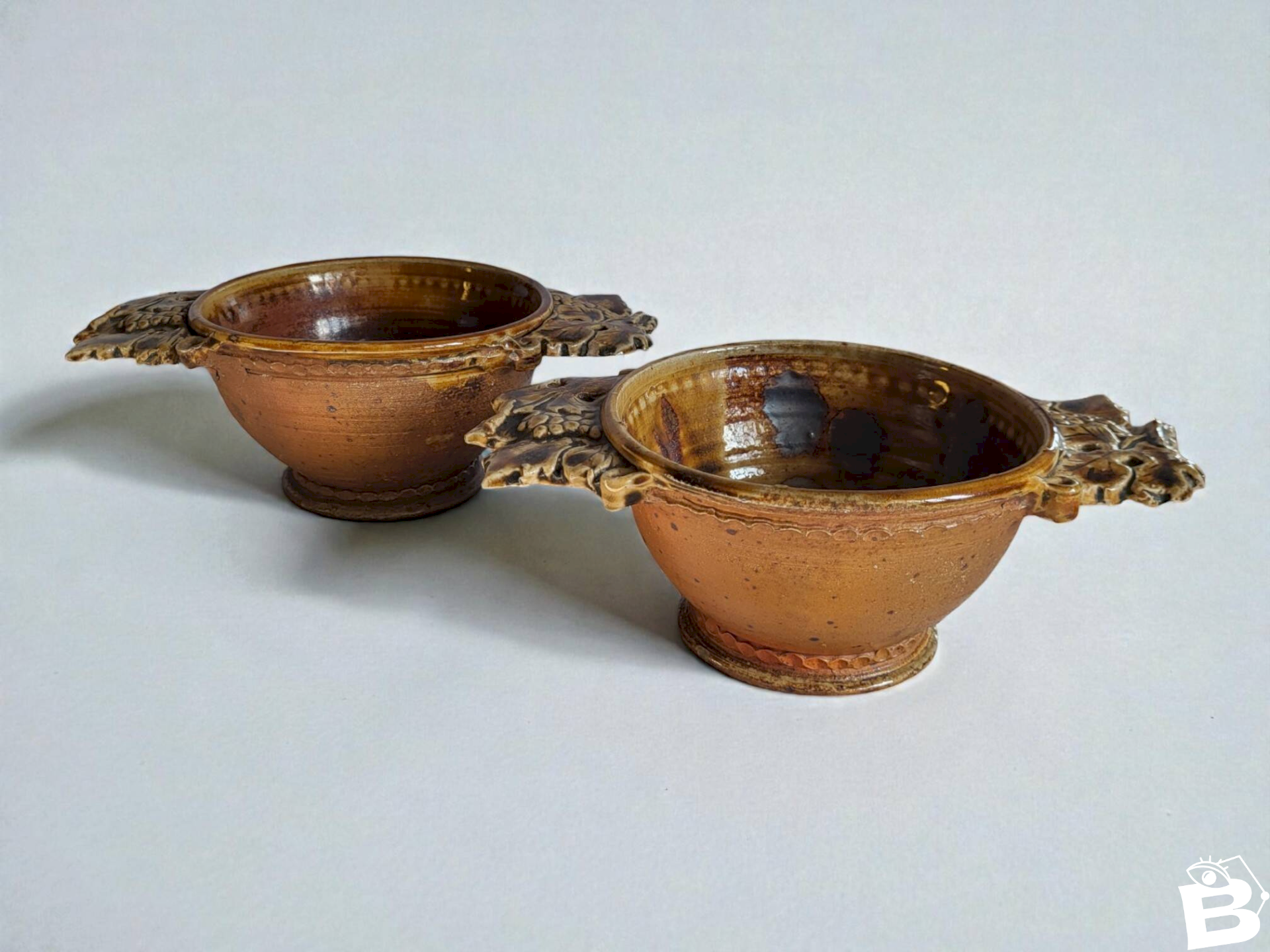 Bols vintage en grès vernissé à oreilles, couleur marron