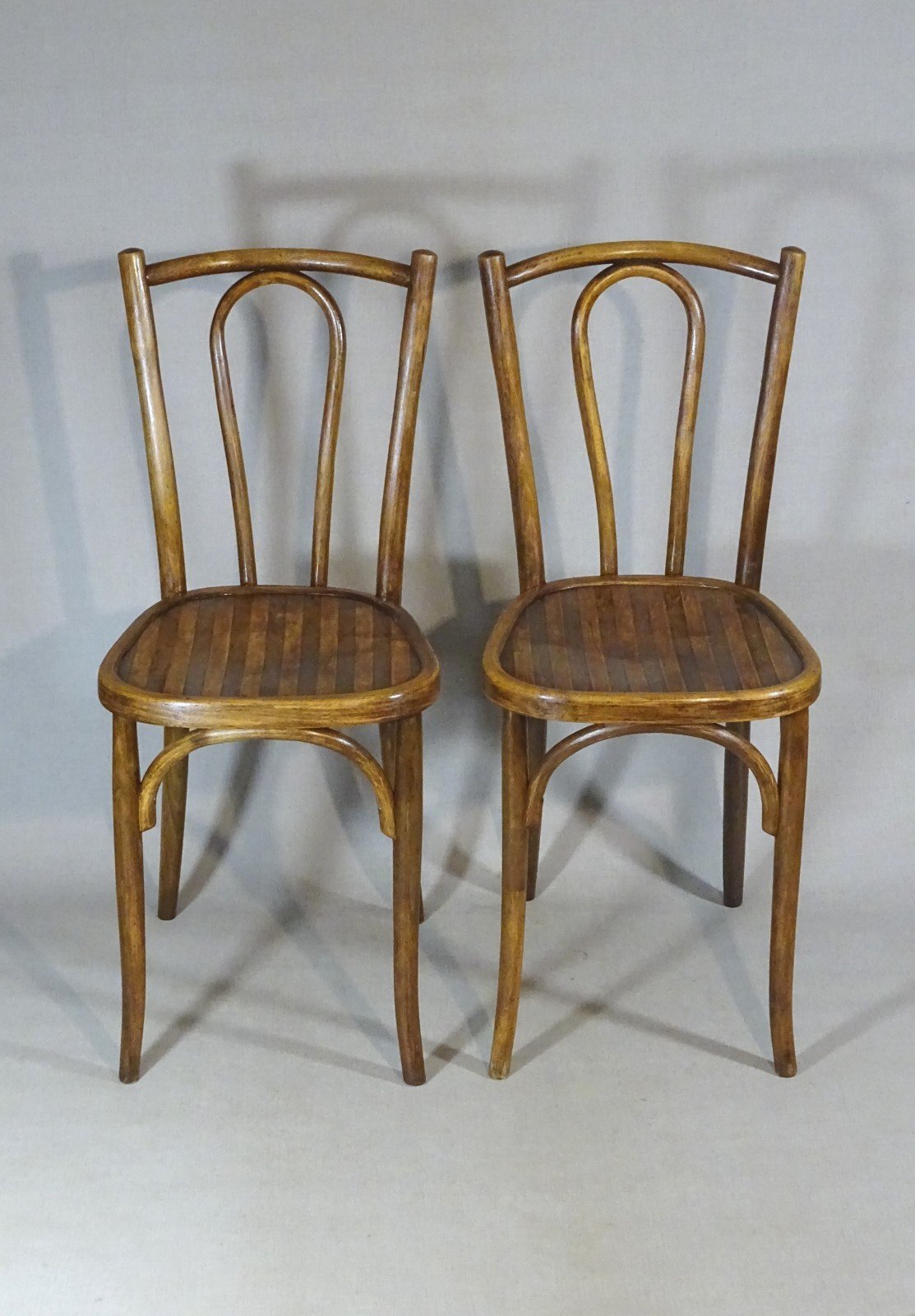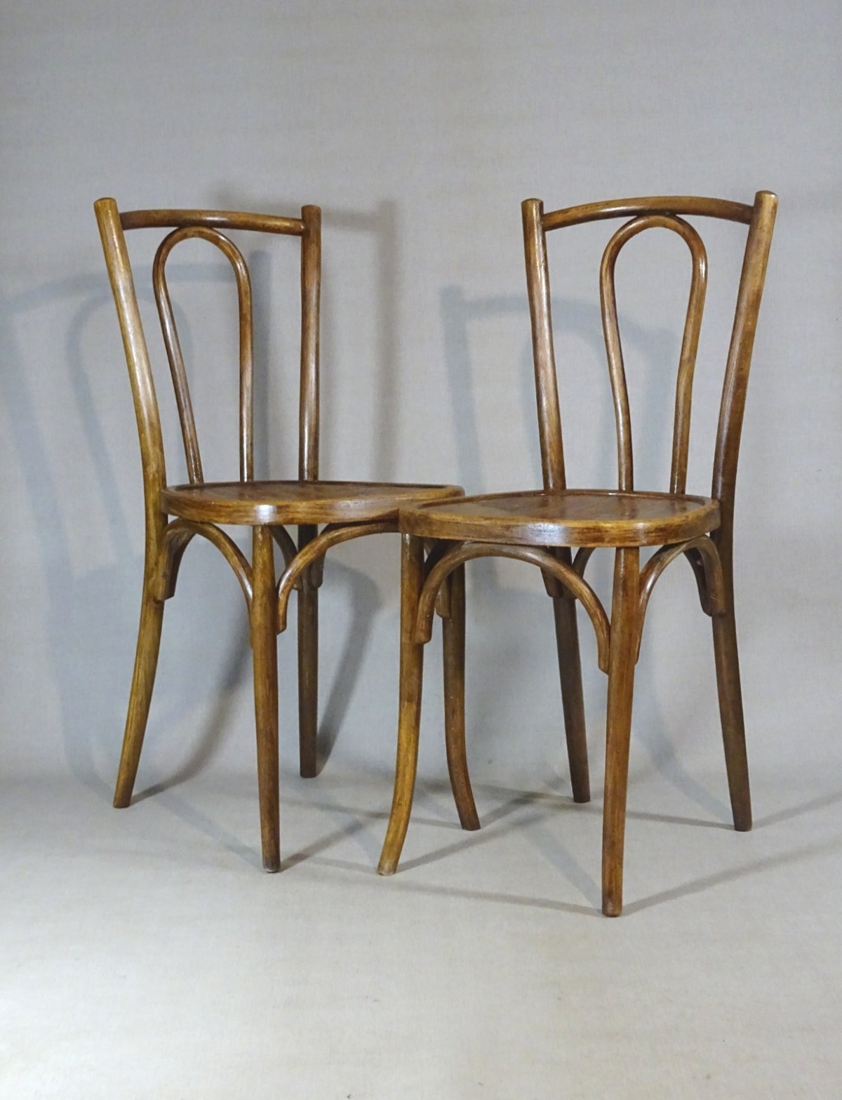 2 chaises bistrot Baumann n° 42 1/2 en bois courbé, 1925