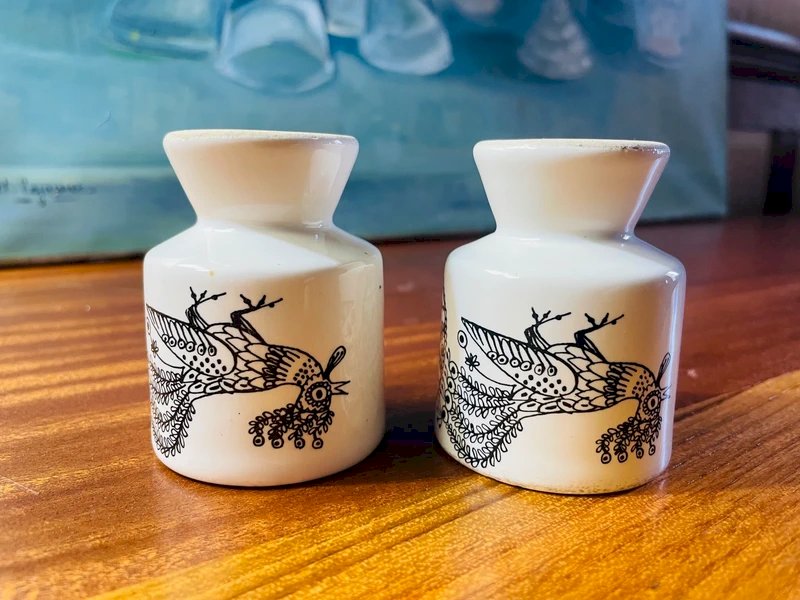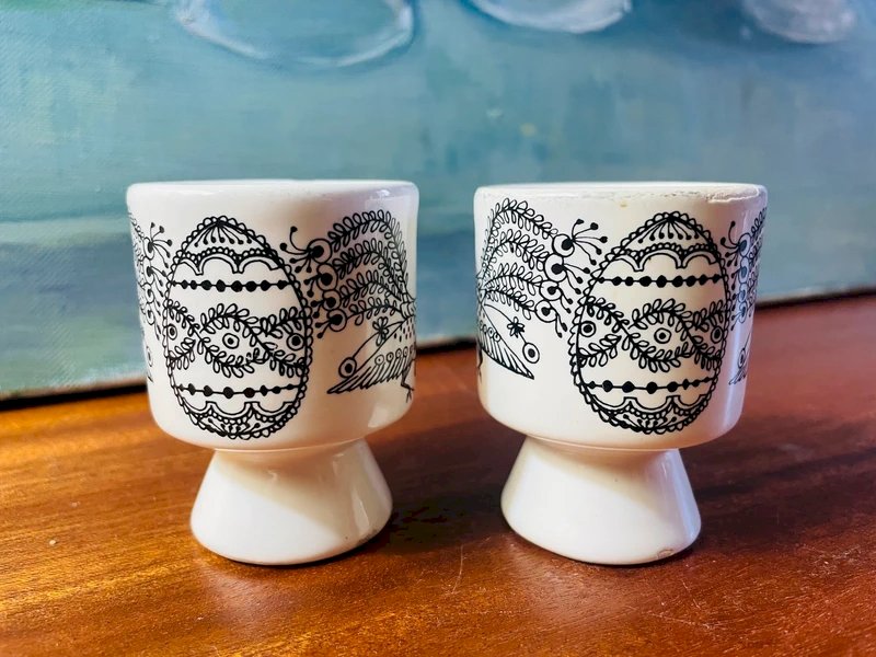 2 coquetiers vintage Scandinaves Hauteur 6,5cm Une légère usure de l’émail sur un des coquetiers