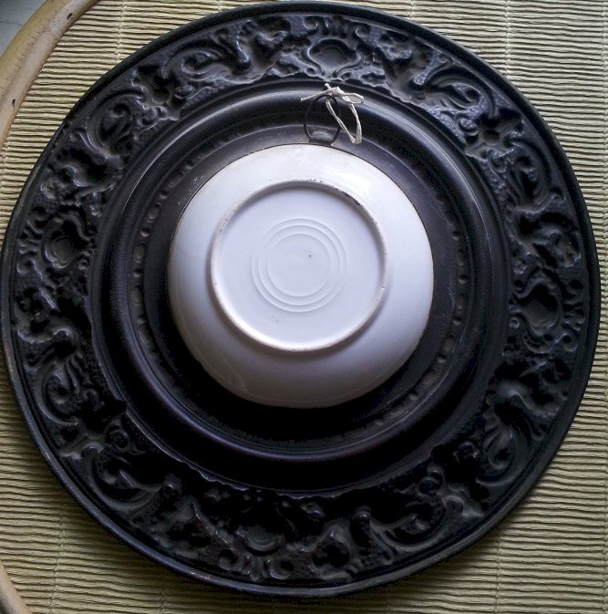 2 plats décoratifs laiton et porcelaine
