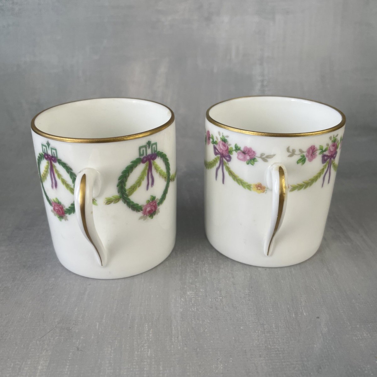 2 tasse à café moka porcelaine de Limoges, Raynaud ? décor guirlandes et fleurs