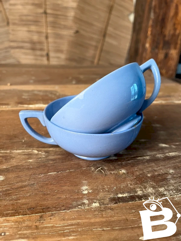 Je signale un très petit défaut de fabrication d’origine au fond de l’une, et 2 mini égrenures sur l’émail et très légère patine sur le tour de l’autre.