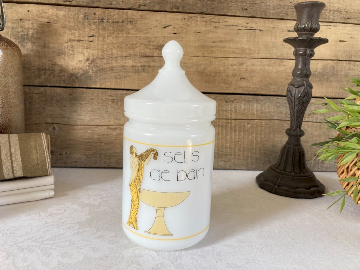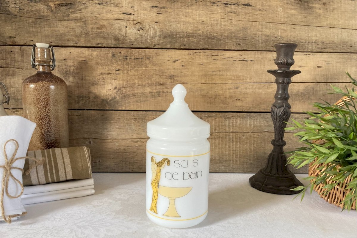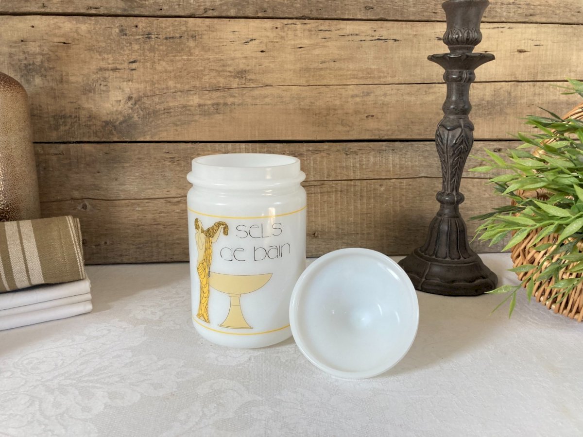 ⚜️ Déco Ancien Pot de Salle de Bain, Sels de Bain en Verre Opaline Blanc Année 1970 ⚜️ Hauteur total 22 Cm, Diamètre 10 Cm État:Occasion: Objet ayant été utilisé. Objet présentant quelques marques d'usure superficielle, ...Occasion: Objet ayant été utilisé. Objet présentant quelques marques d'usure superficielle, entièrement opérationnel et fonctionnant correctement. Il peut s'agir d'un modèle de démonstration ou d'un objet retourné en magasin après une courte période d'utilisation. les éventuelles imperfections. Couleur:Blanc Pays d'origine:France métropolitaine Matériau:Opaline Pièce de la maison:Salle de bain