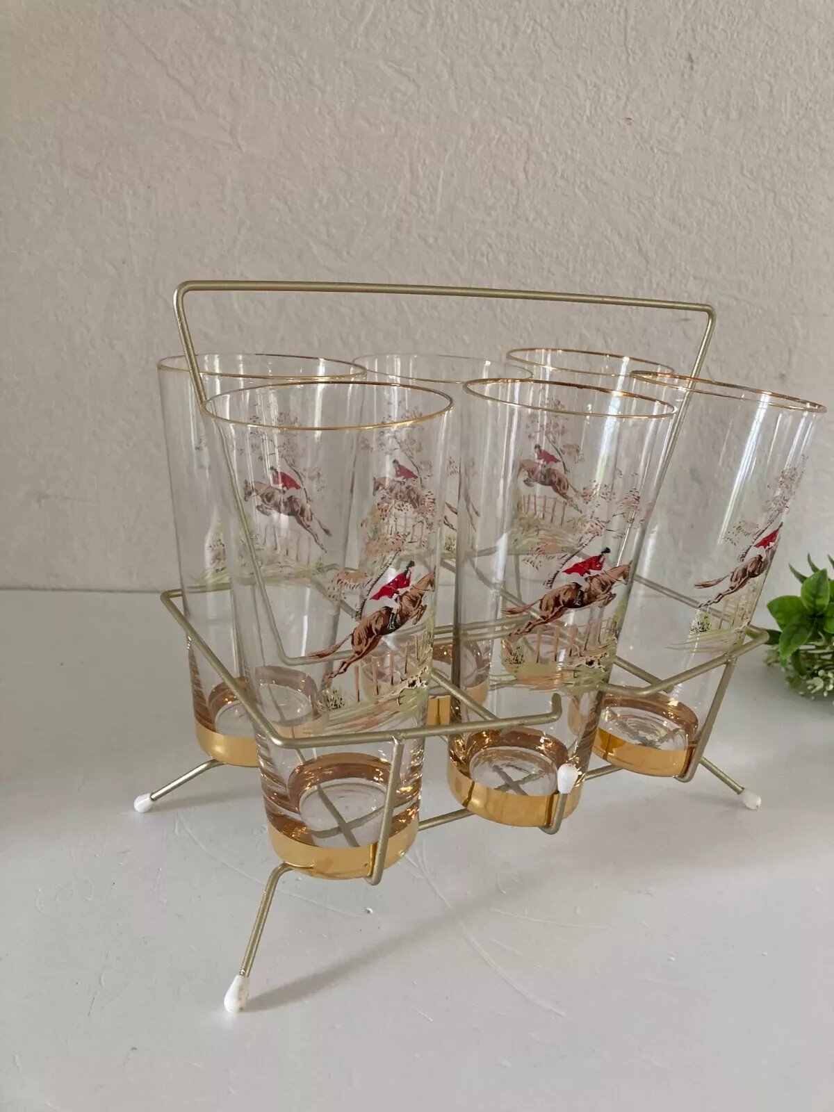 24⚜️ Ancien Lots de 7 Verres Support en Métal Doré Le Cavalier