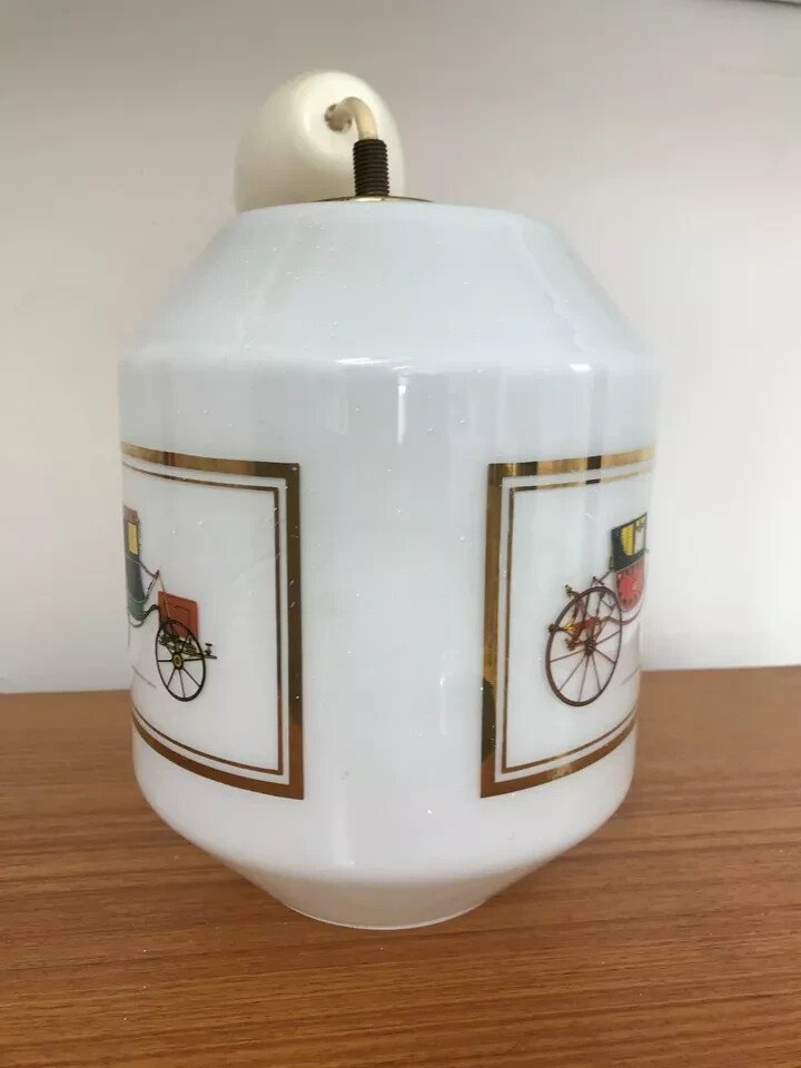 ? Ancien Lustre En Verre Opaline Motif Calèche Chariot Suspension Luminaire Vintage ? Hauteur 22 Cm Type:Suspension, Lustre Matière:Verre Pays d'origine:France