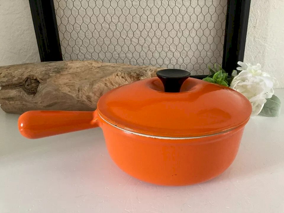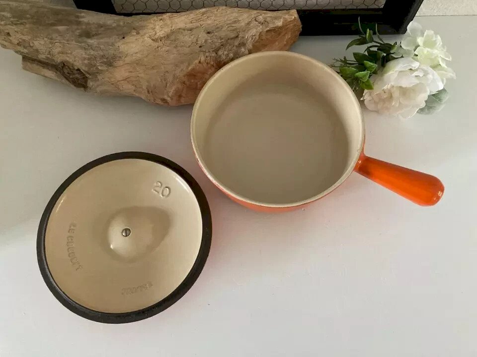 ⚜️ Ancienne Casserole Poêle Le Creuset 20 en Fonte Émaillée Couleur Orange ⚜️ Hauteur 12 Cm avec le couvercle Poids 1,7 Kg État:Occasion: Objet ayant été utilisé. Objet présentant quelques marques d'usure superficielle, ...Occasion: Objet ayant été utilisé. Objet présentant quelques marques d'usure superficielle, entièrement opérationnel et fonctionnant correctement. Il peut s'agir d'un modèle de démonstration ou d'un objet retourné en magasin après une courte période d'utilisation. les éventuelles imperfections. Couleur:Orange Marque:Le Creuset Type:Casserole, poêle Type de cuisinière compatible:Électrique, Gaz Pays d'origine:France