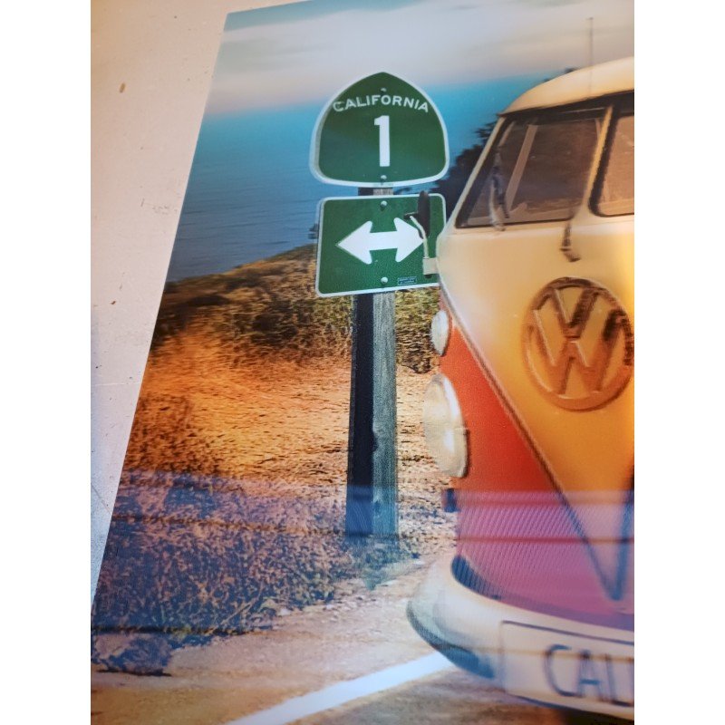 3 Pubs Plastifiées Voiture US  , Combi Wolsvagen et VW , Dimensions : 67 cm sur 47 cm , et : 50 cm sur 46 cm , effet 3 Dimensions et stroboscopique , très bon ètat