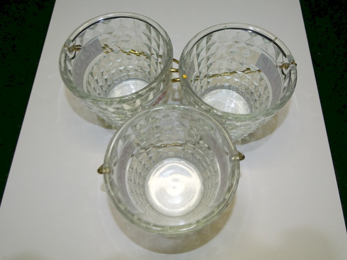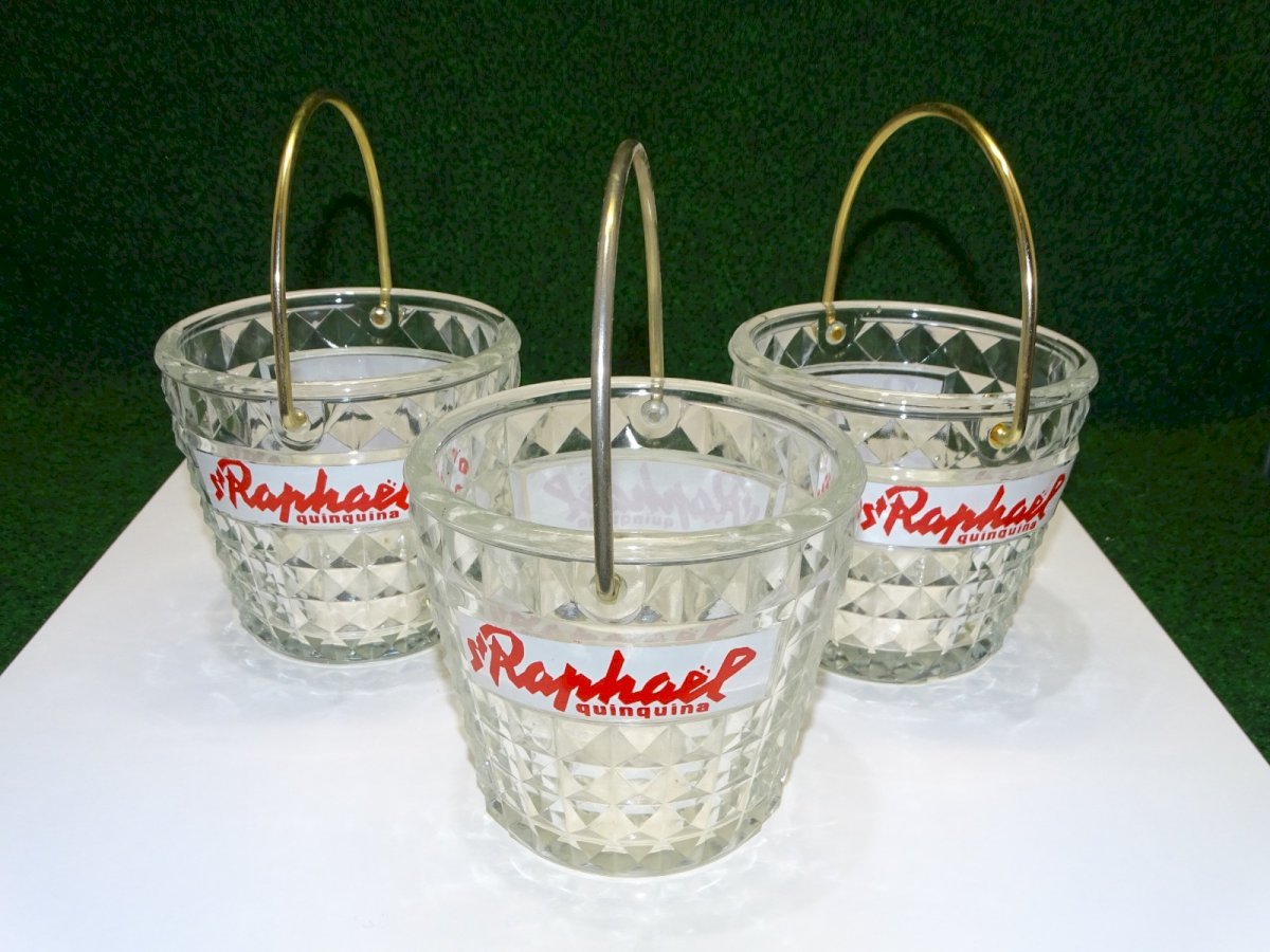3 Seaux à glaçons en verre publicité St Raphaël Quinquina - jus de grenier, en bon état d'usage (voir photos) - Réf. 1V240718/487 - Hauteur bord 10,5 cm - Hauteur anse levée 17,8 cm - Diamètre Bord 11,5 cm - Poids 1,732 kg - Pour me contacter mon adresse mail : EXPEDITION POSSIBLE EN MONDIAL RELAY ou COLISSIMO sur demande TRES BON EMBALLAGE GARANTI MERCI de BIEN REGARDER TOUTES les PHOTOS car ELLES FONT PARTIE INTEGRANTE de la DESCRIPTION et PERMETTENT de VOIR l'OBJET AU MIEUX avec SES PETITS DEFAUTS EVENTUELS - État:Occasion: Objet ayant été utilisé. Consulter la description du vendeur pour avoir plus de détails ...Occasion: Objet ayant été utilisé. les éventuelles imperfections.