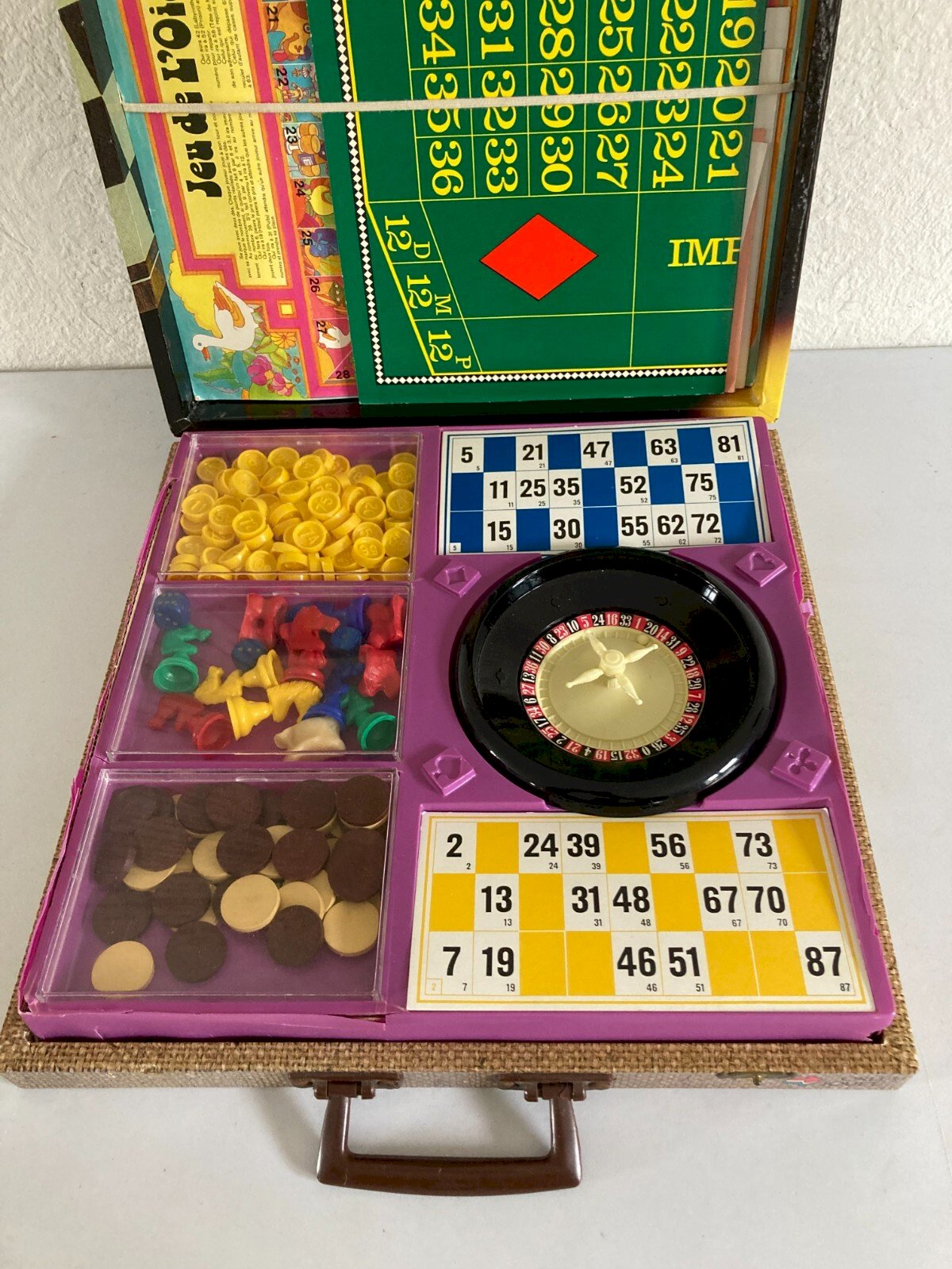⚜️ Ancienne Malette de Jeu - Plusieurs Jeux de Société Complet Vintage ⚜️ Important une charnière cassée voir photo N° 8 et le plastique mauve est abîmé visible sur les photos également État:Occasion: Objet ayant été utilisé. Consulter la description du vendeur pour avoir plus de détails ...Occasion: Objet ayant été utilisé. les éventuelles imperfections. Marque:Malette de jeux Nom du jeu:Divers Pays d'origine:France