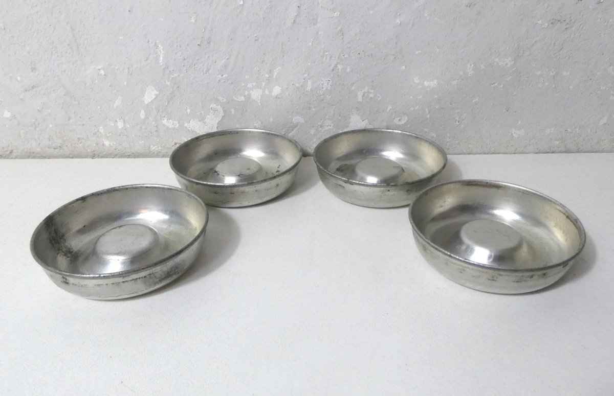 4 anciens moules à gateaux. En métal. Hauteur: 2,5 cm. Diamètre: 8 cm. En bon état, des traces d'usage et de vieillissement superficielles. État:Occasion: Objet ayant été utilisé. Objet présentant quelques marques d'usure superficielle, ...Occasion: Objet ayant été utilisé. Objet présentant quelques marques d'usure superficielle, entièrement opérationnel et fonctionnant correctement. Il peut s'agir d'un modèle de démonstration ou d'un objet retourné en magasin après une courte période d'utilisation. les éventuelles imperfections.