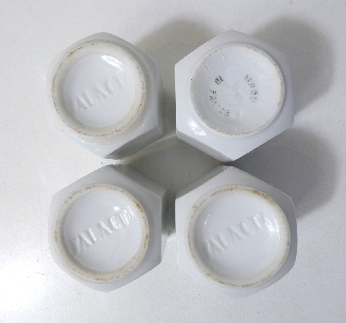 Ensemble de 4 anciens pots de yaourt, en porcelaine. Estampillés YALACTA. Hauteur 6,5 cm. Diamètre: 6 cm. En excellent état. État:OccasionObjet ayant été utilisé. Objet présentant quelques marques d'usure superficielle, entièrement opérationnel et fonctionnant correctement. Il peut s'agir d'un modèle de démonstration ou d'un objet retourné en magasin après une courte période d'utilisation. les éventuelles imperfections. Couleur:Blanc Marque:Yalacta Type:pot Matériau:Céramique et porcelaine Pays d'origine:France métropolitaine