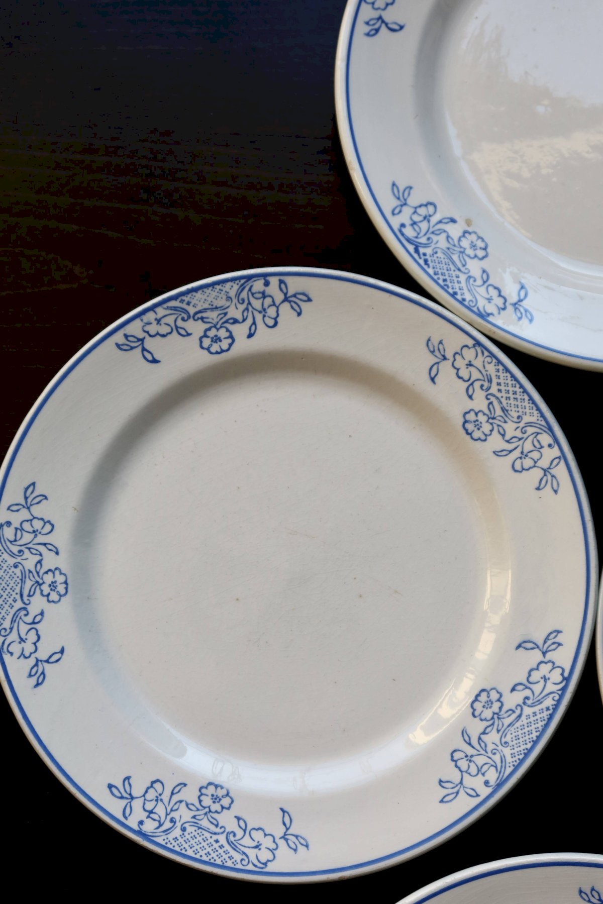 4 assiettes à dessert vintage faïence - Liseré bleu et motif fleuri Céramique