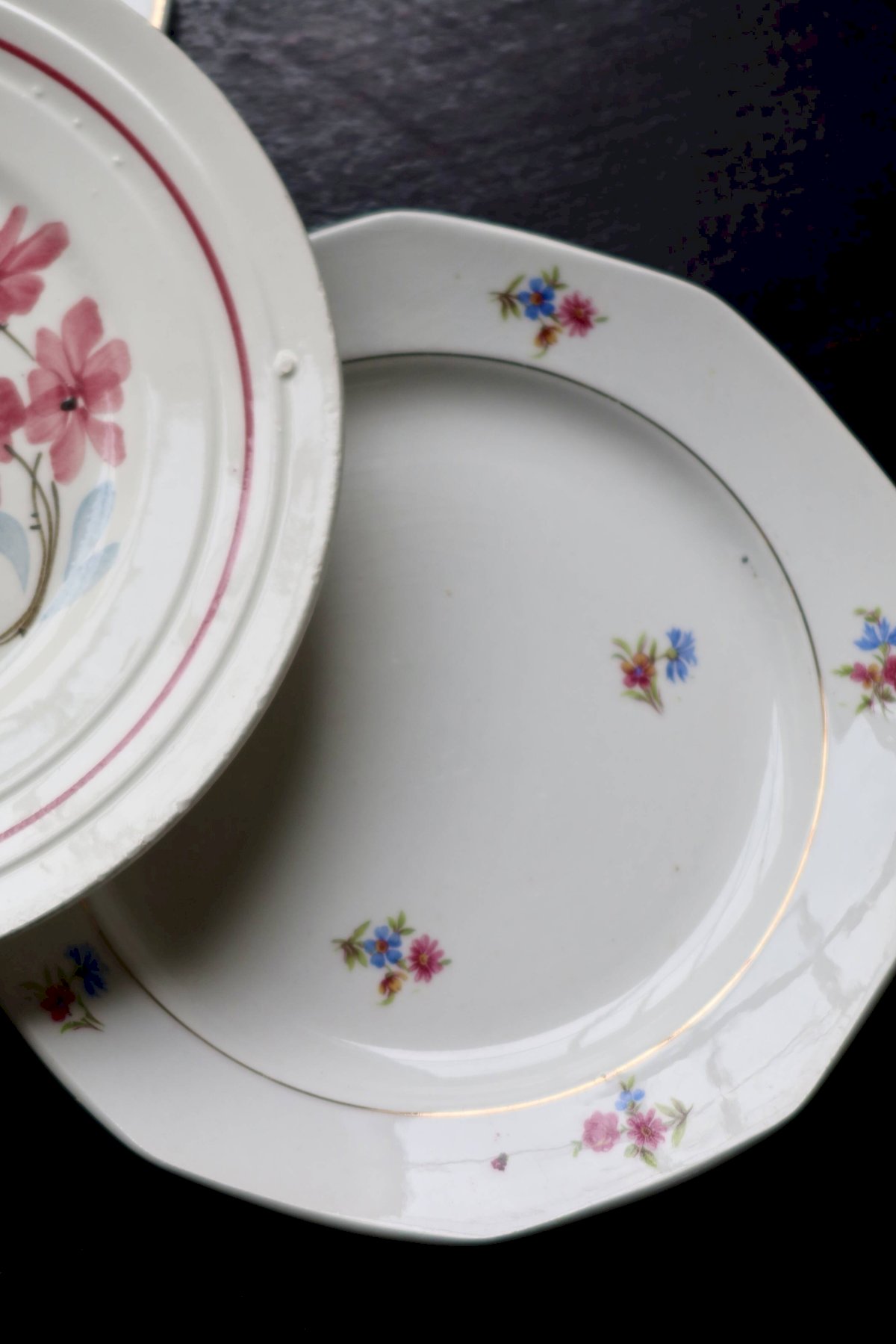 4 assiettes creuses vintage dépareillées faïence - Lot Camilla