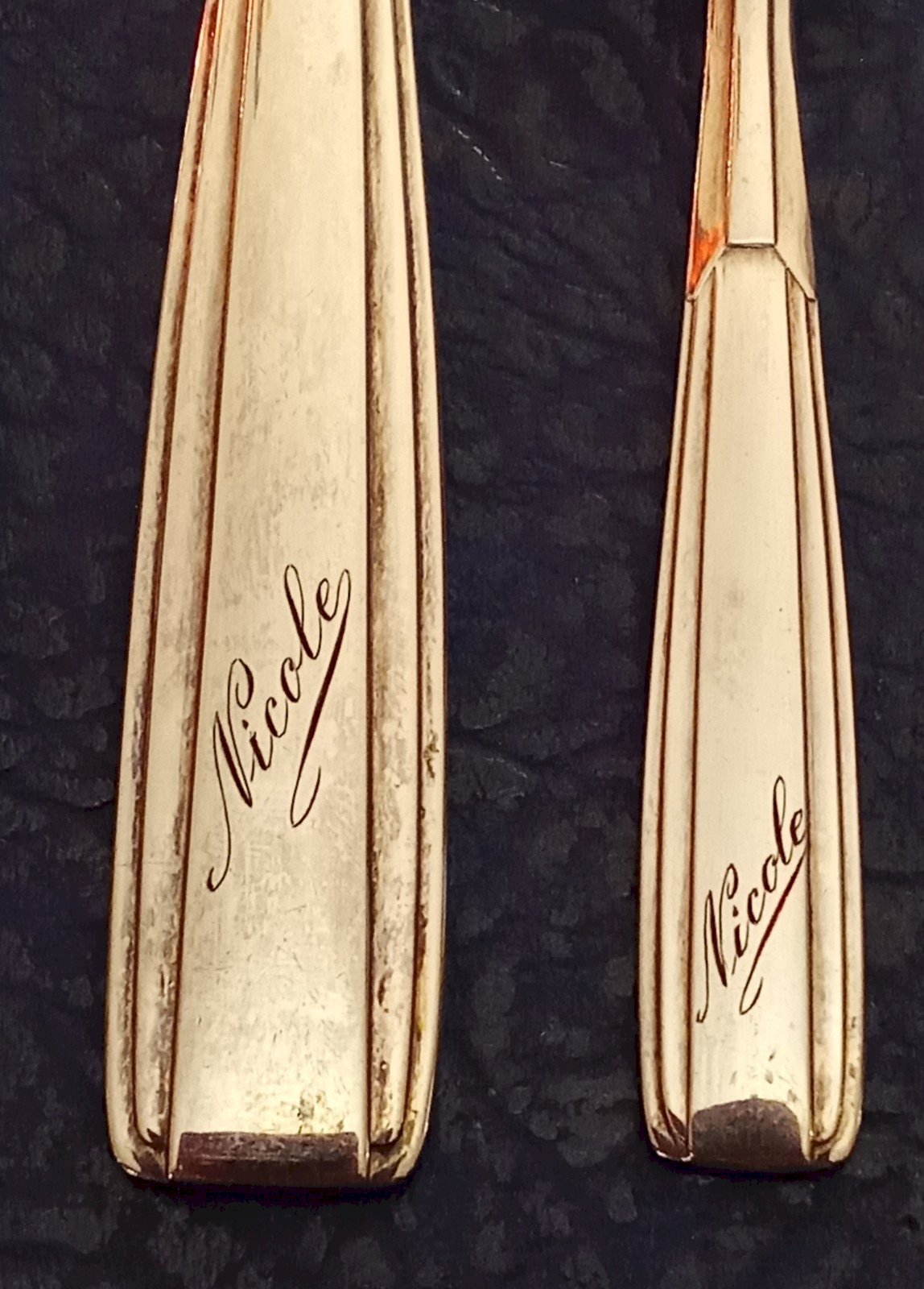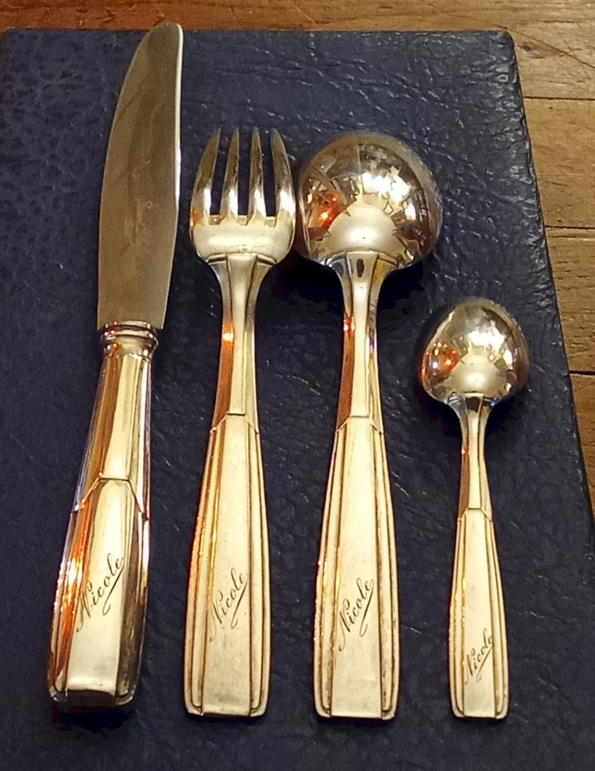 Très bel ensemble De 4 anciens couverts Orfèvrerie Ravinet d Enfer Modèle Navarre Gravés Nicole Art de la table ancien Bel état Très chic Longueur 20.5 cm / 20.5 cm /24.9 cm / 13.4 cm Sous-type:Ménagère