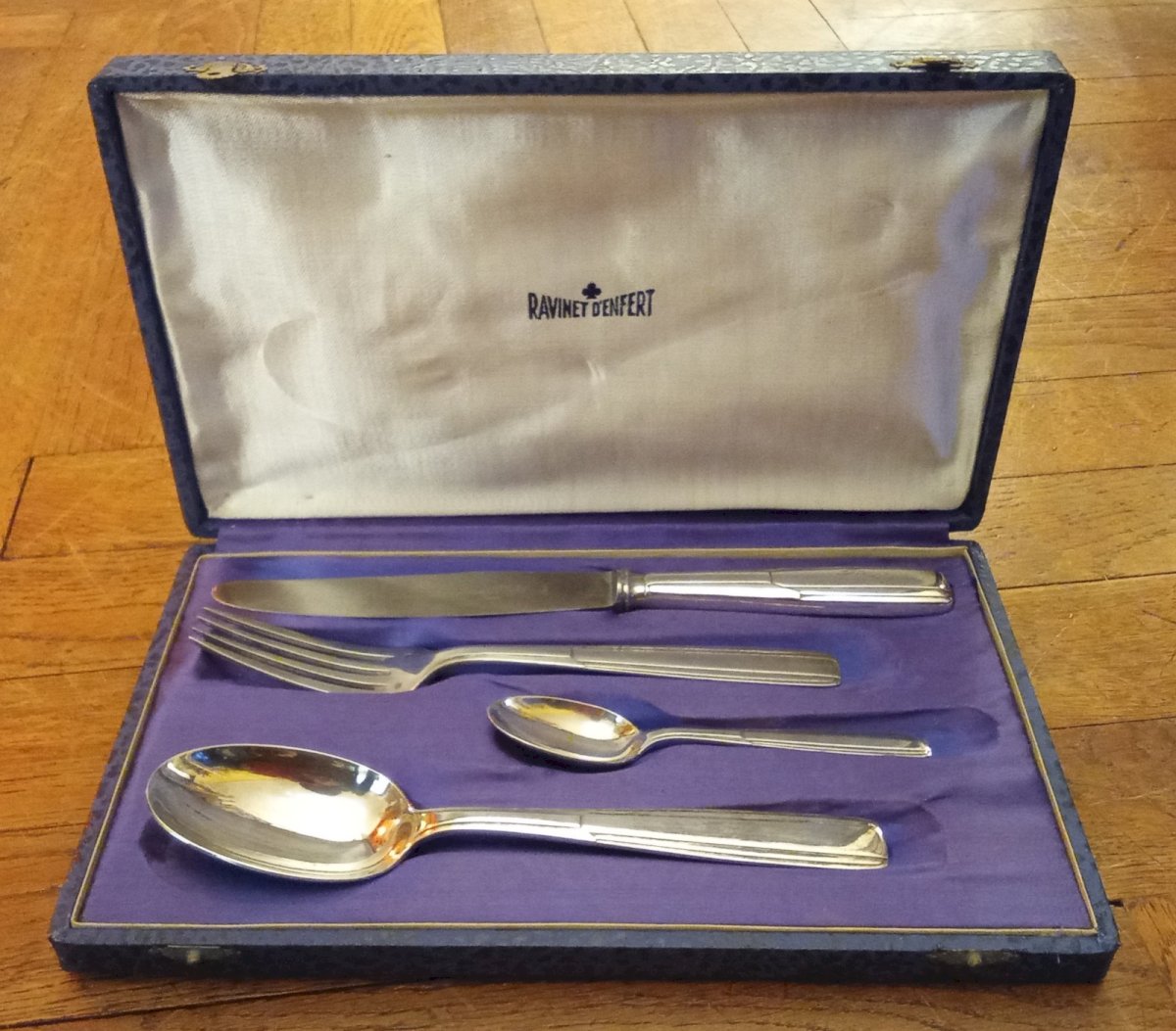4 Couverts cuillère fourchette couteau Ravinet D Enfert Nicole Modèle Navarre