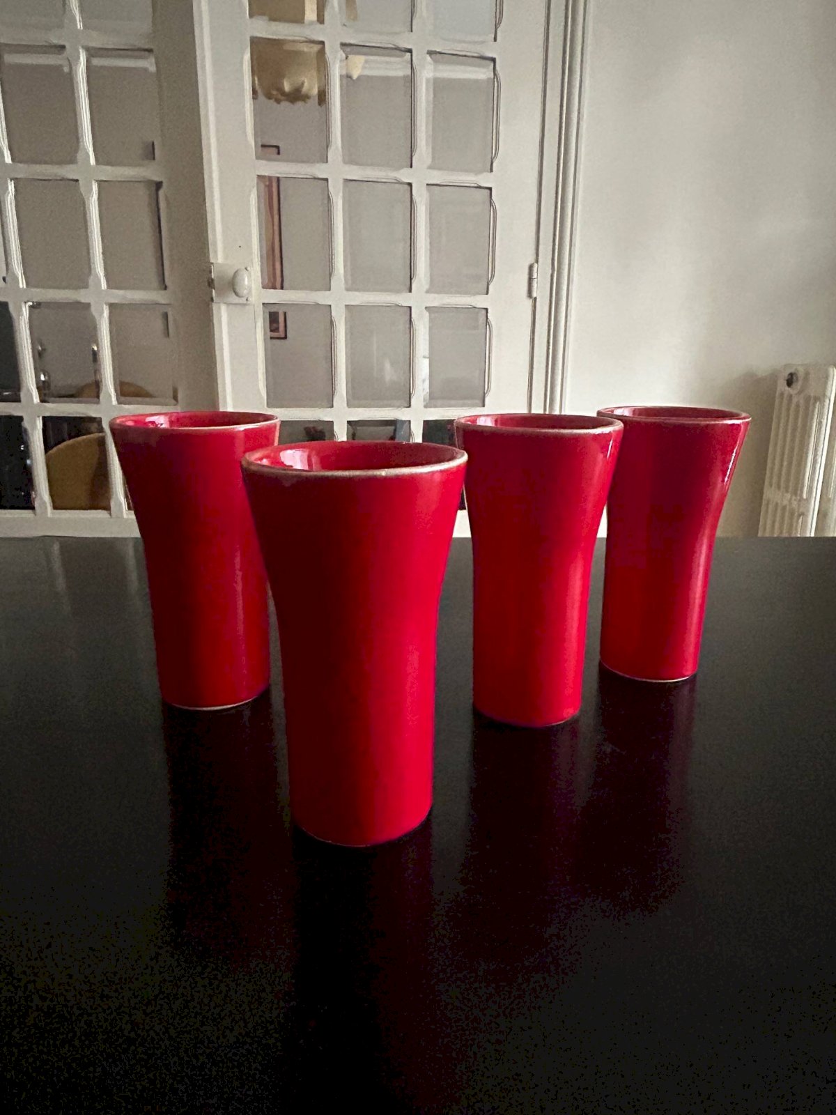 4 gobelets en céramique des années 60/70 signé Poët Laval.