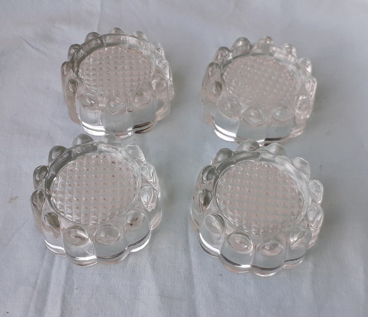 4 pieds dits de "piano" en verre, servant à rehausser une table, un bureau ou un piano. Ceux-ci sont plus petits que le modèle habituel.