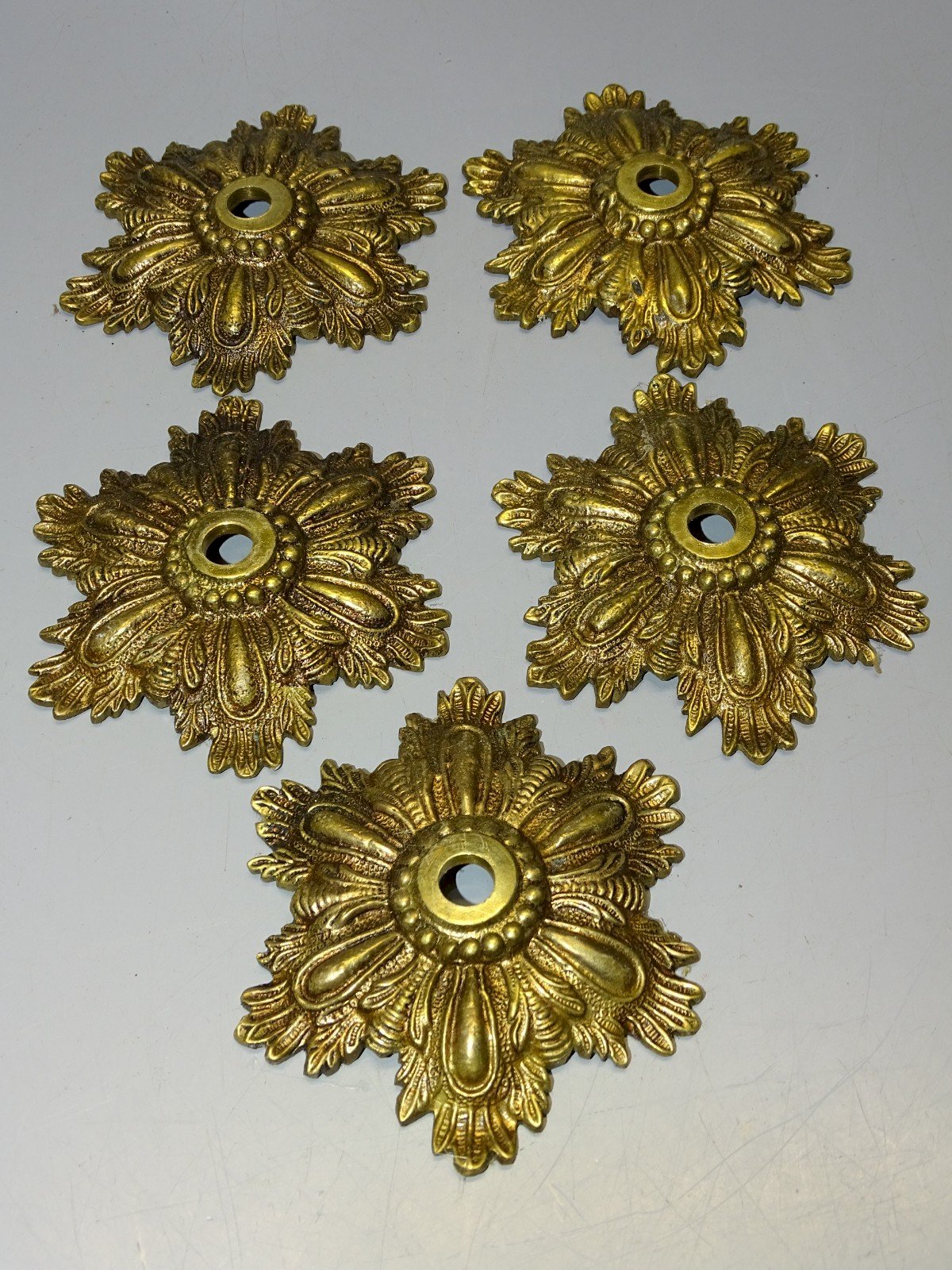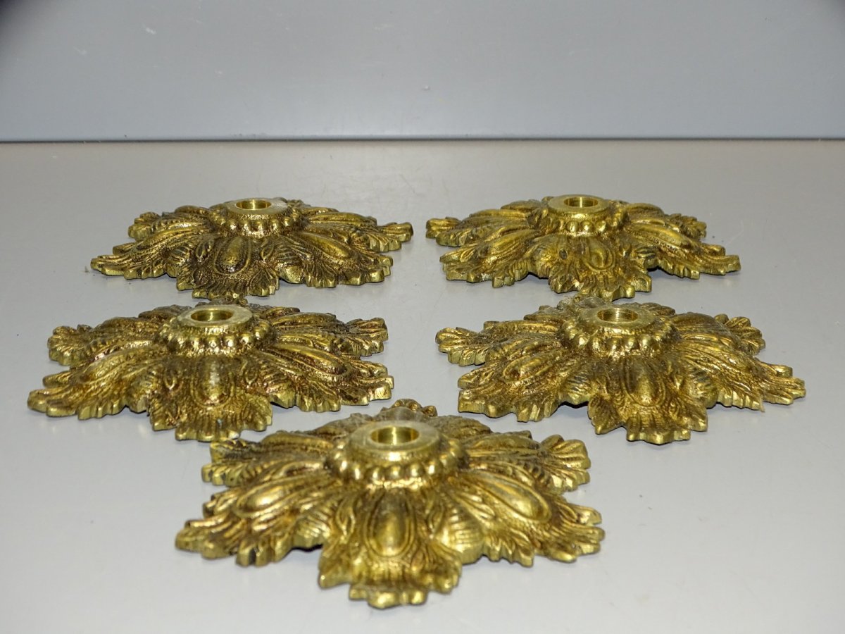 -5 ANCIENNES ROSACES PLAFONNIERS de PLAFOND BRONZE pour LUSTRE ou AUTRE D