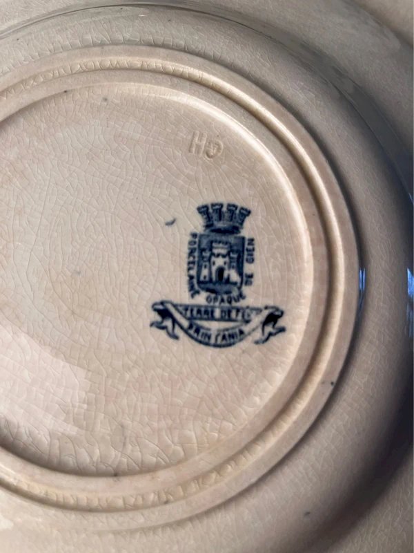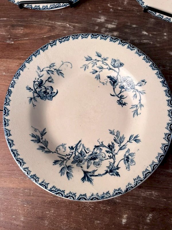 5 belles assiettes creuses de la manufacture de Gien modèle Printania (1878).