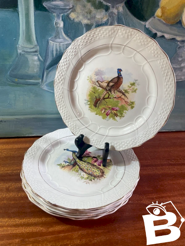 5 assiettes Terre de Fer faisans et paon