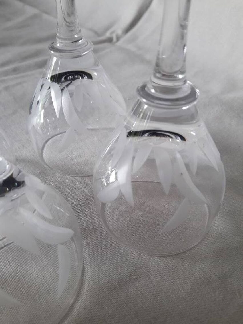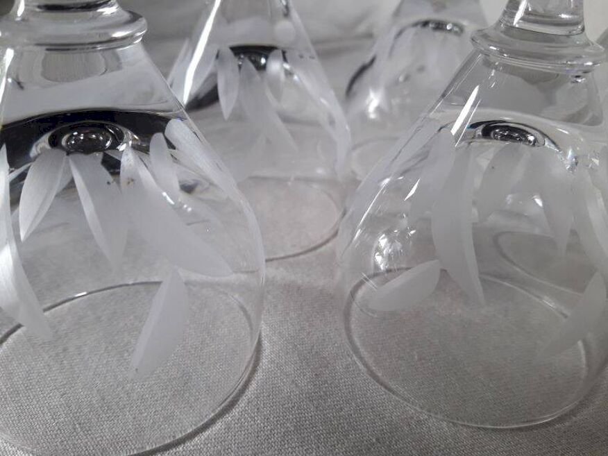 lot de 6 Verres à Pied Vintage en Cristal gravé