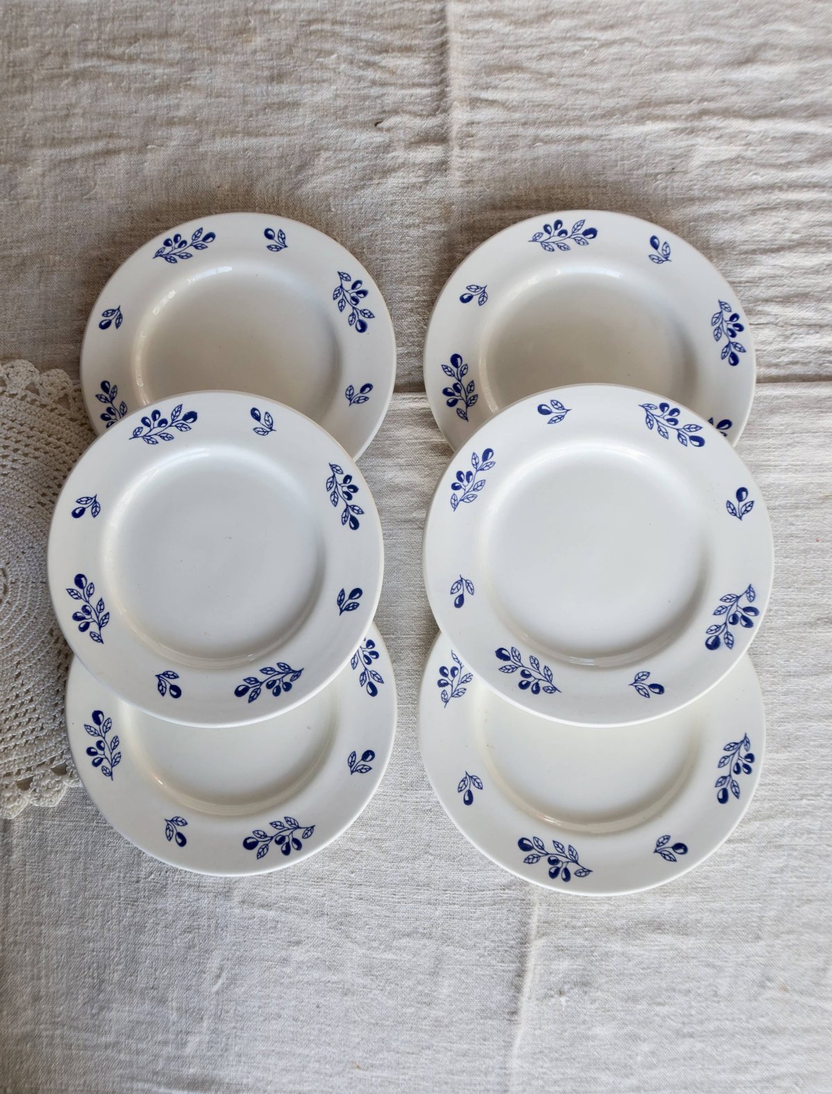 lot de 5 Assiette à dessert Faïence Saint Amand Ceranord Fleurs Bleues vintage