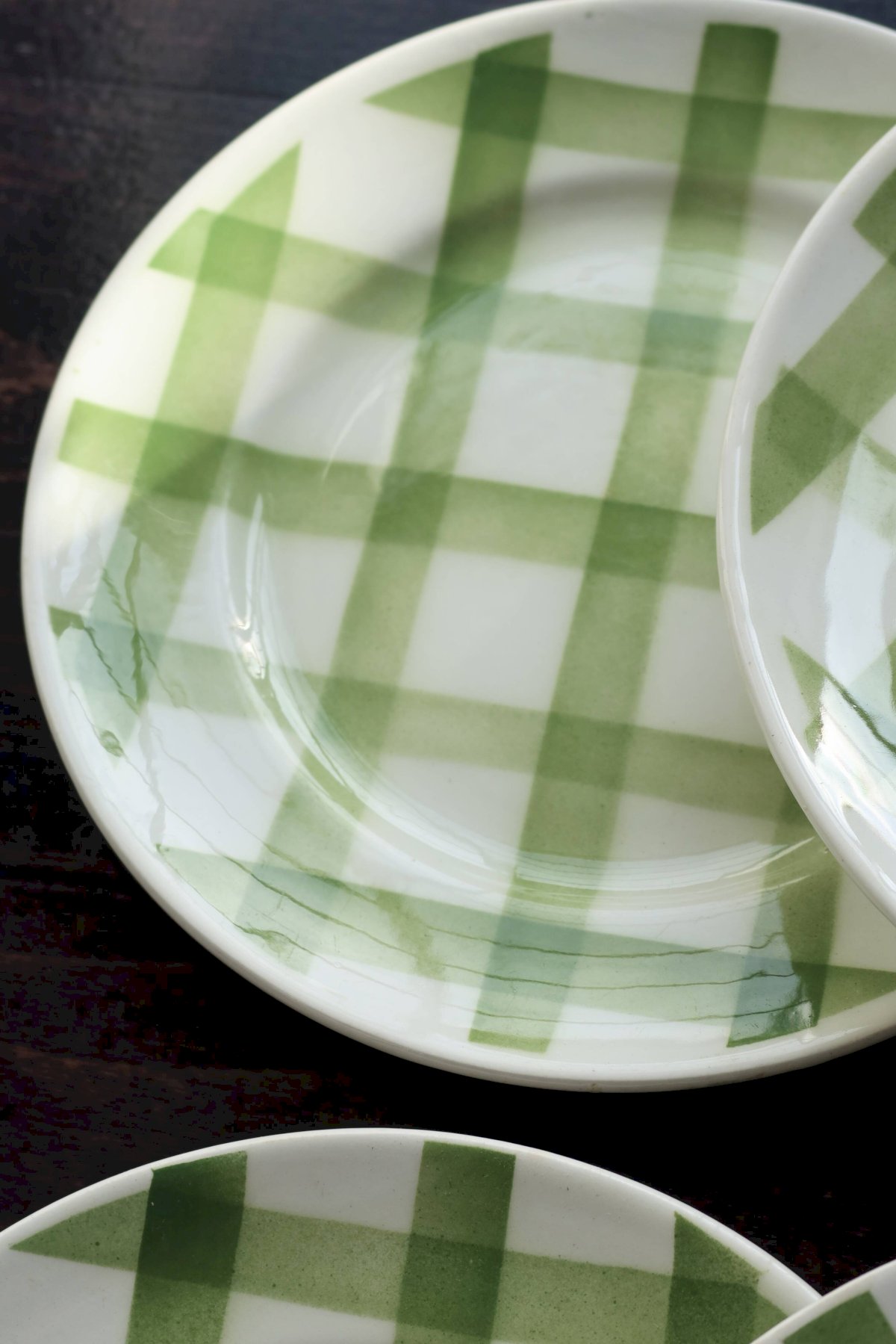 2 assiettes creuses style Vintage Art Déco, à carreaux verts, Moulins des Loups