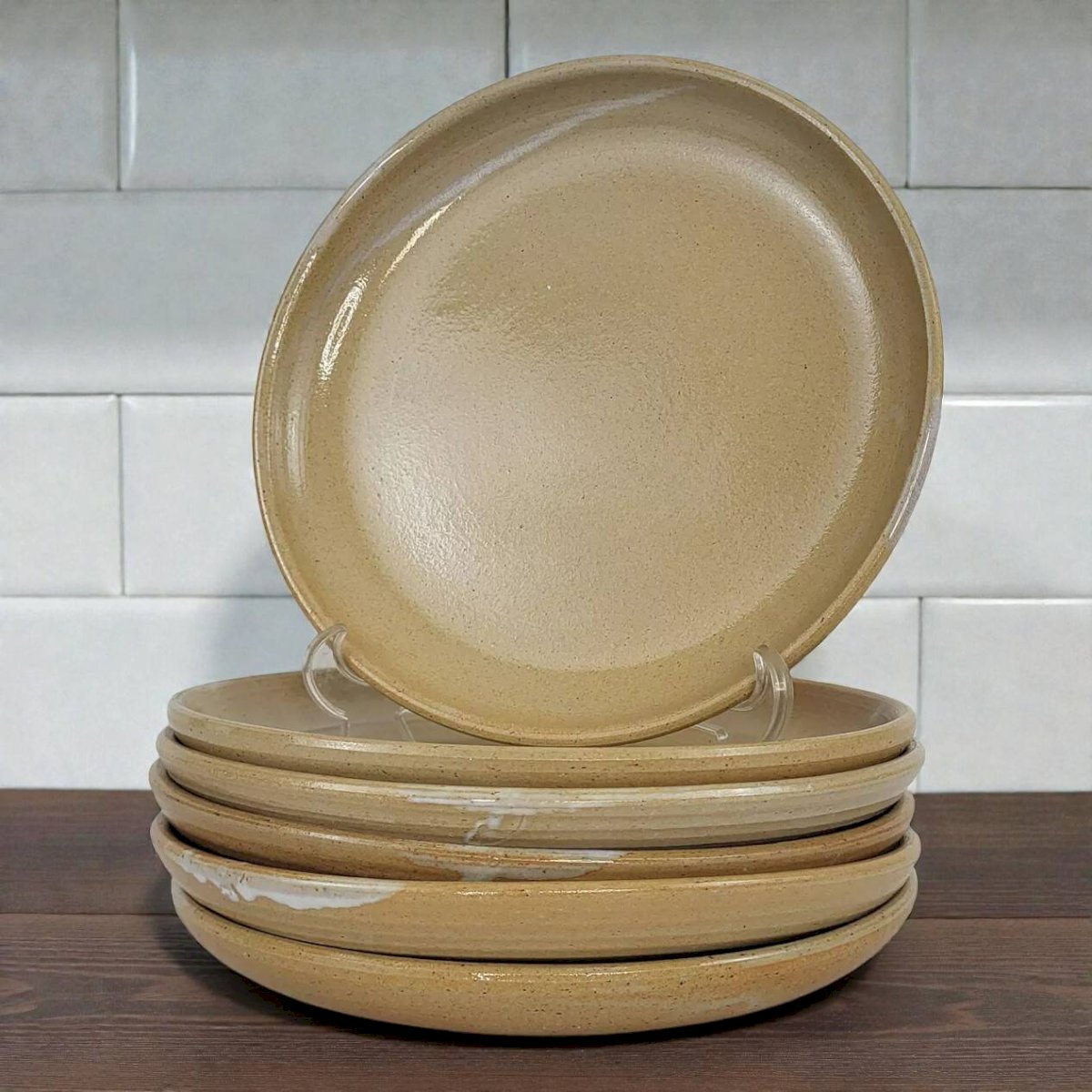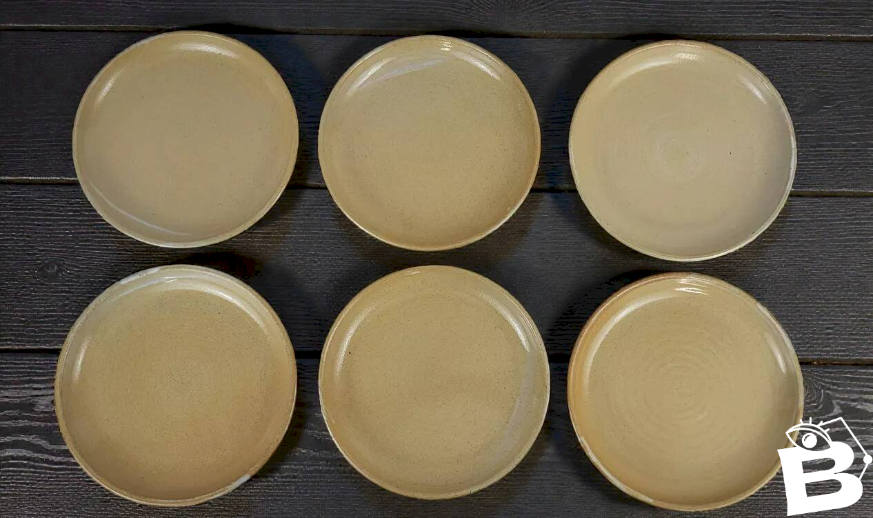 6 assiettes plates en grès Poterie Auger Beige Céramique
