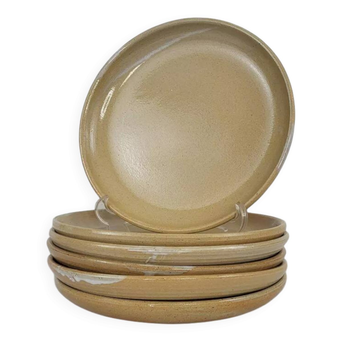 Set de 6 assiettes plates en grès / léger rebord / origine: puisaye, poterie Daniel Auger (1929-2019), tourneur à Accolay, à saint amand en puisaye.Diamètre 21, 5 cm.Travail artisanal.