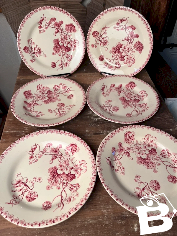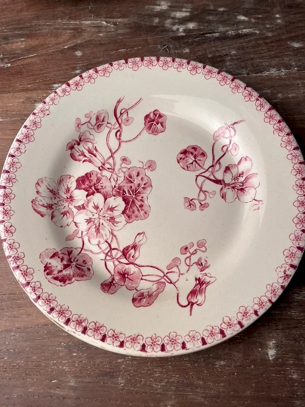 6 très belles assiettes plates de la manufacture de Gien modèle Capucines 1878 en terre de fer.