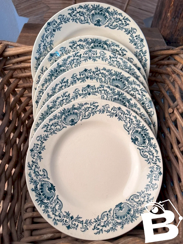 6 assiettes plates en faïence de Longchamp modèle Coquille en terre de fer fin XIXe, début XXe.
