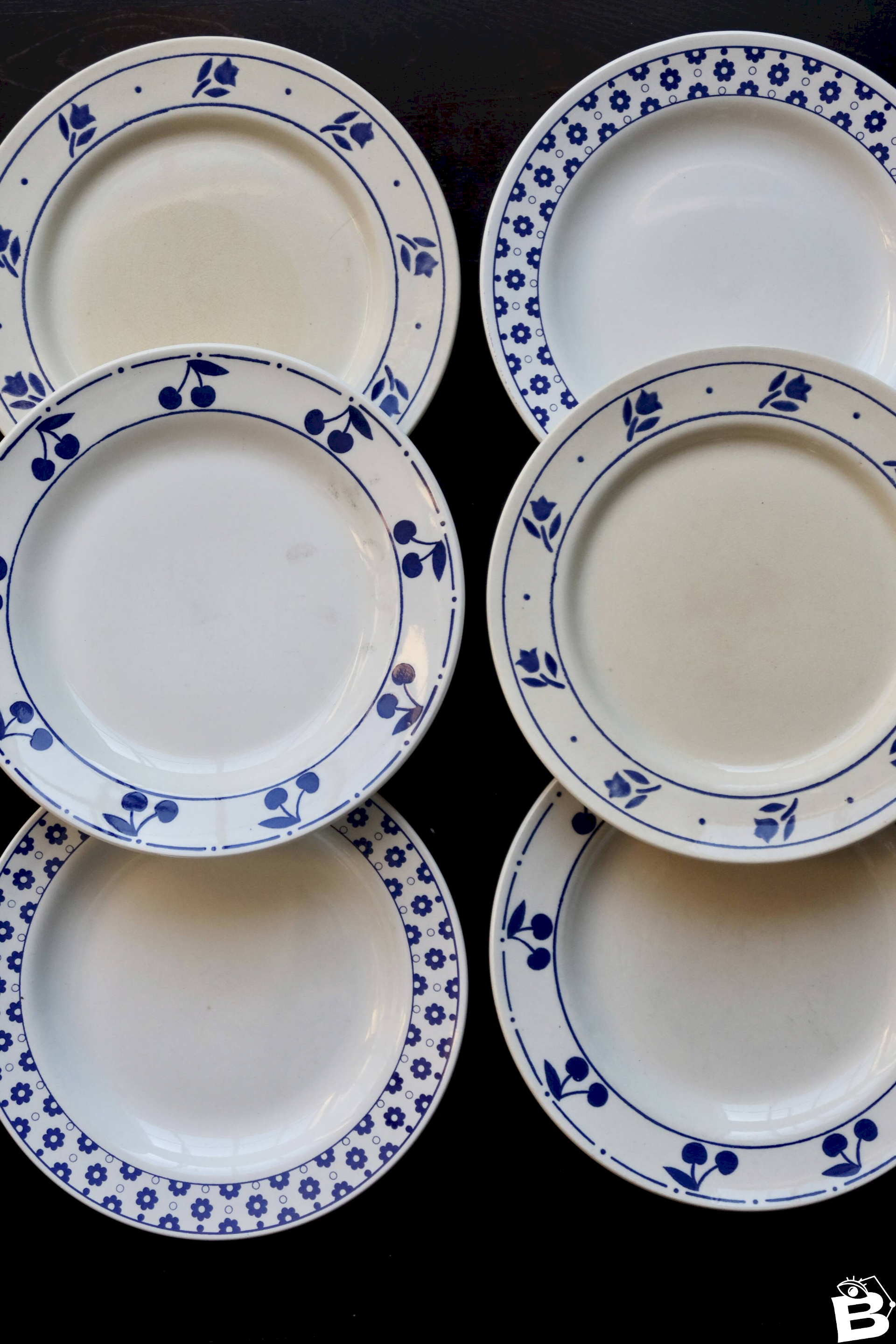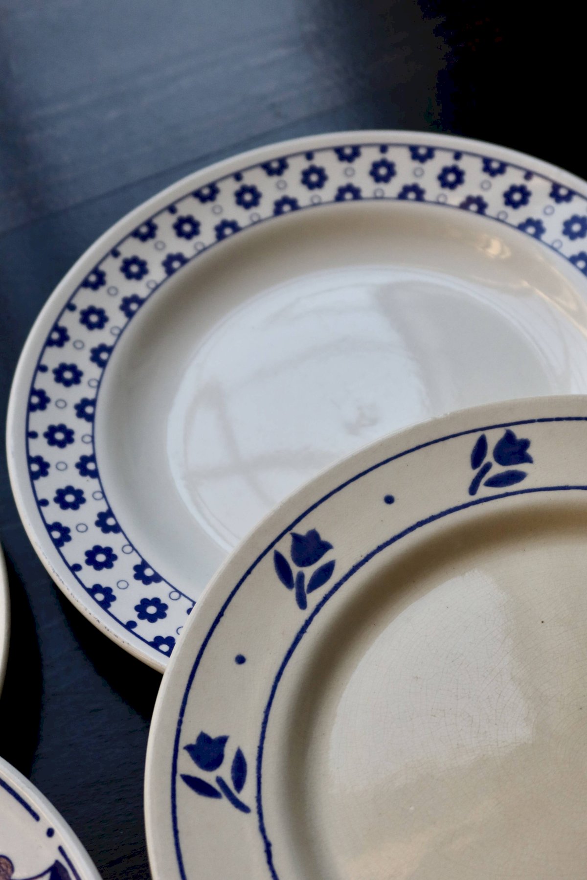 6 assiettes à dessert vintage porcelaine dépareillée bleue blanche