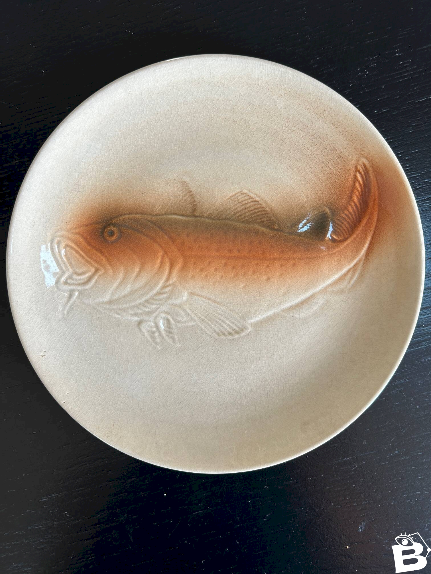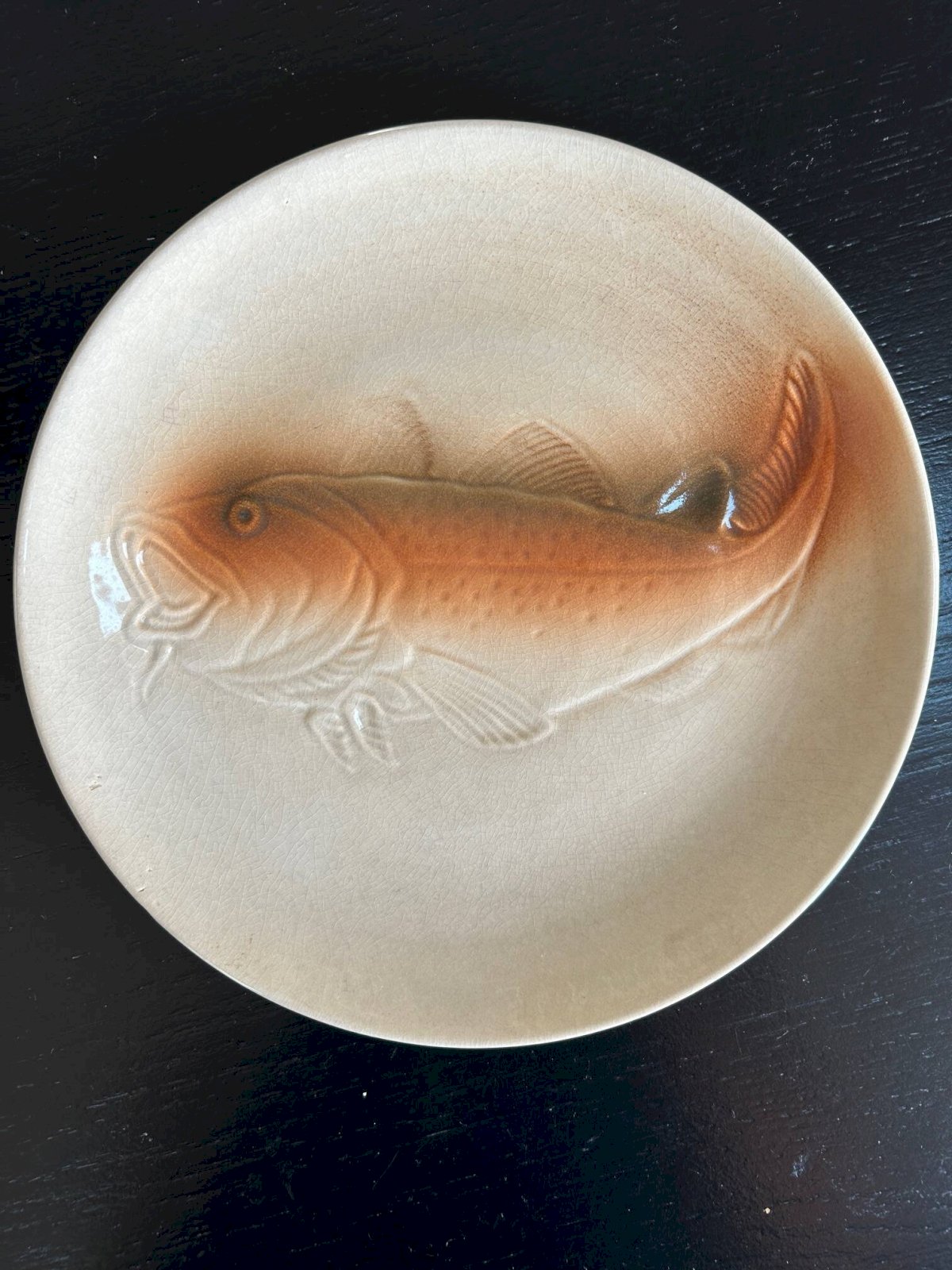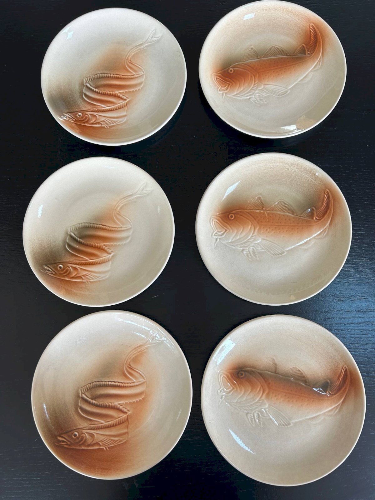 6 assiettes des années 50/60 de la manufacture de Saint Amand.Motif anguille et poisson.