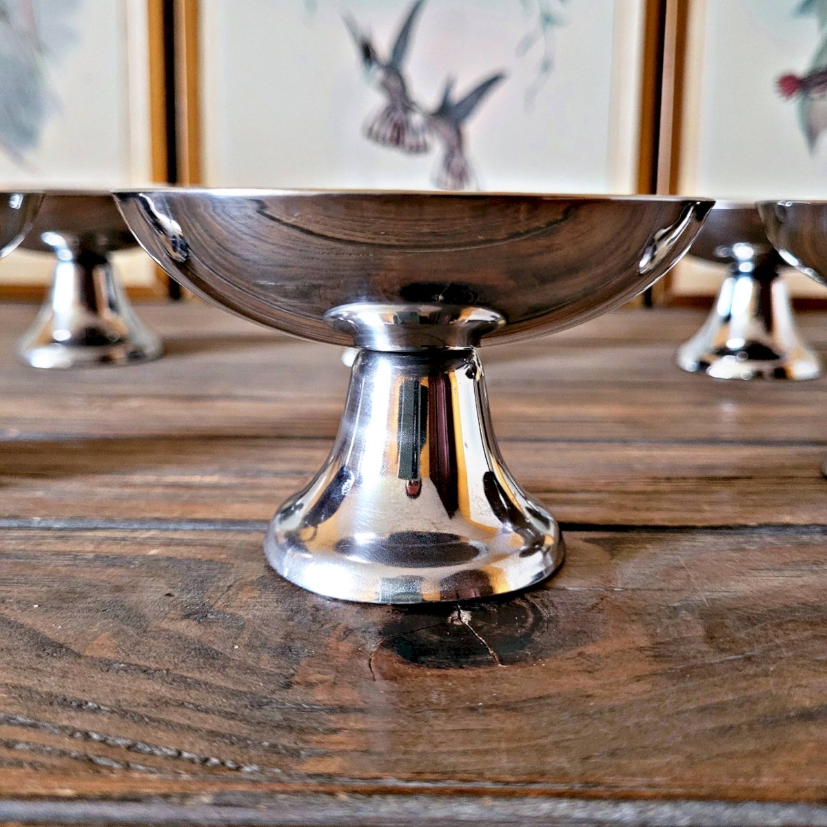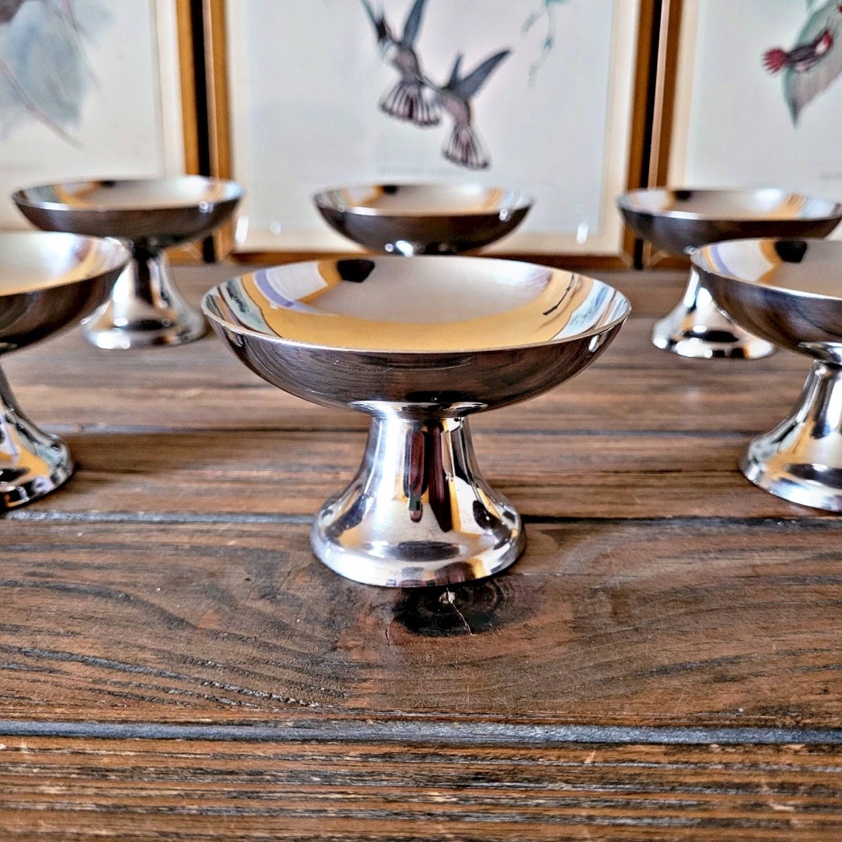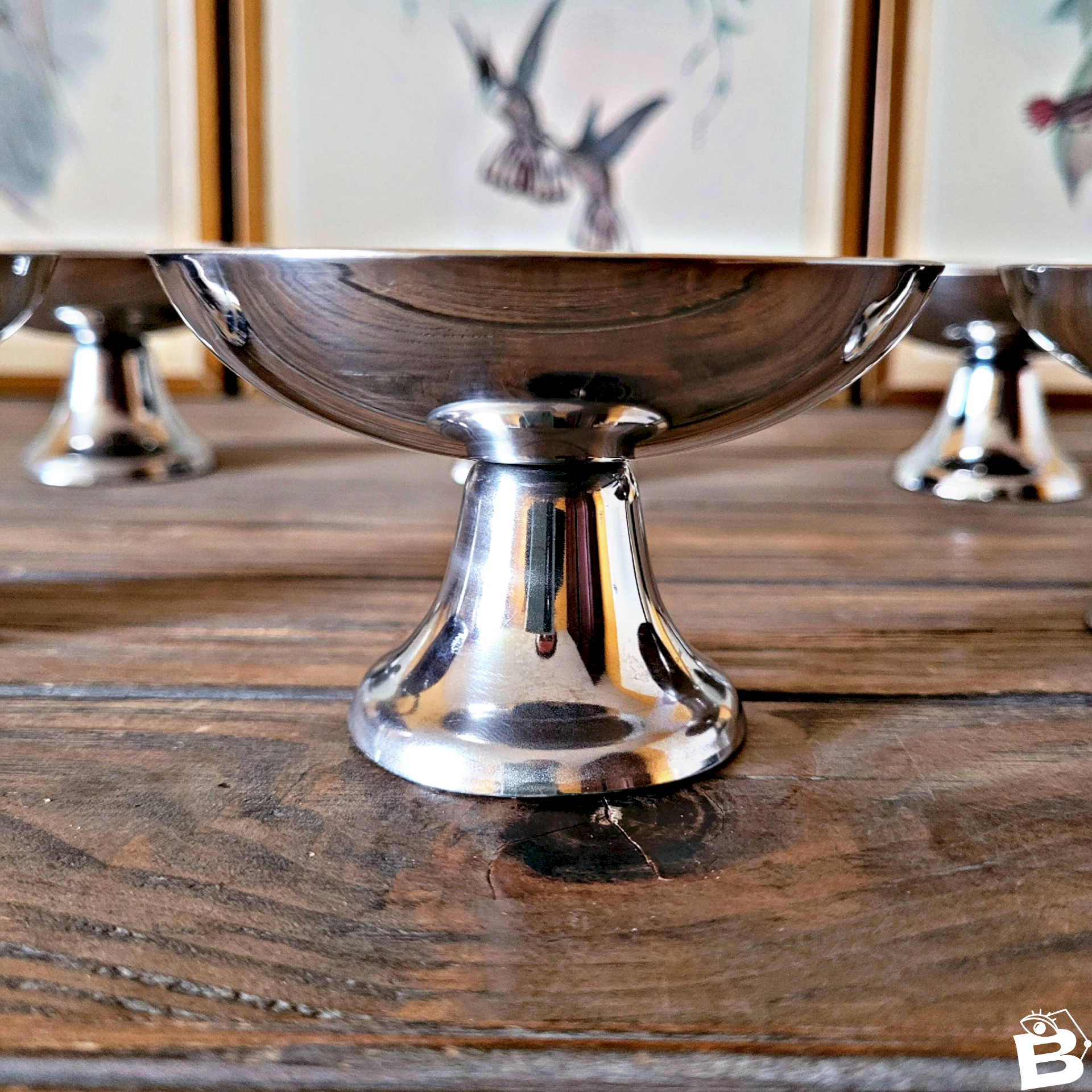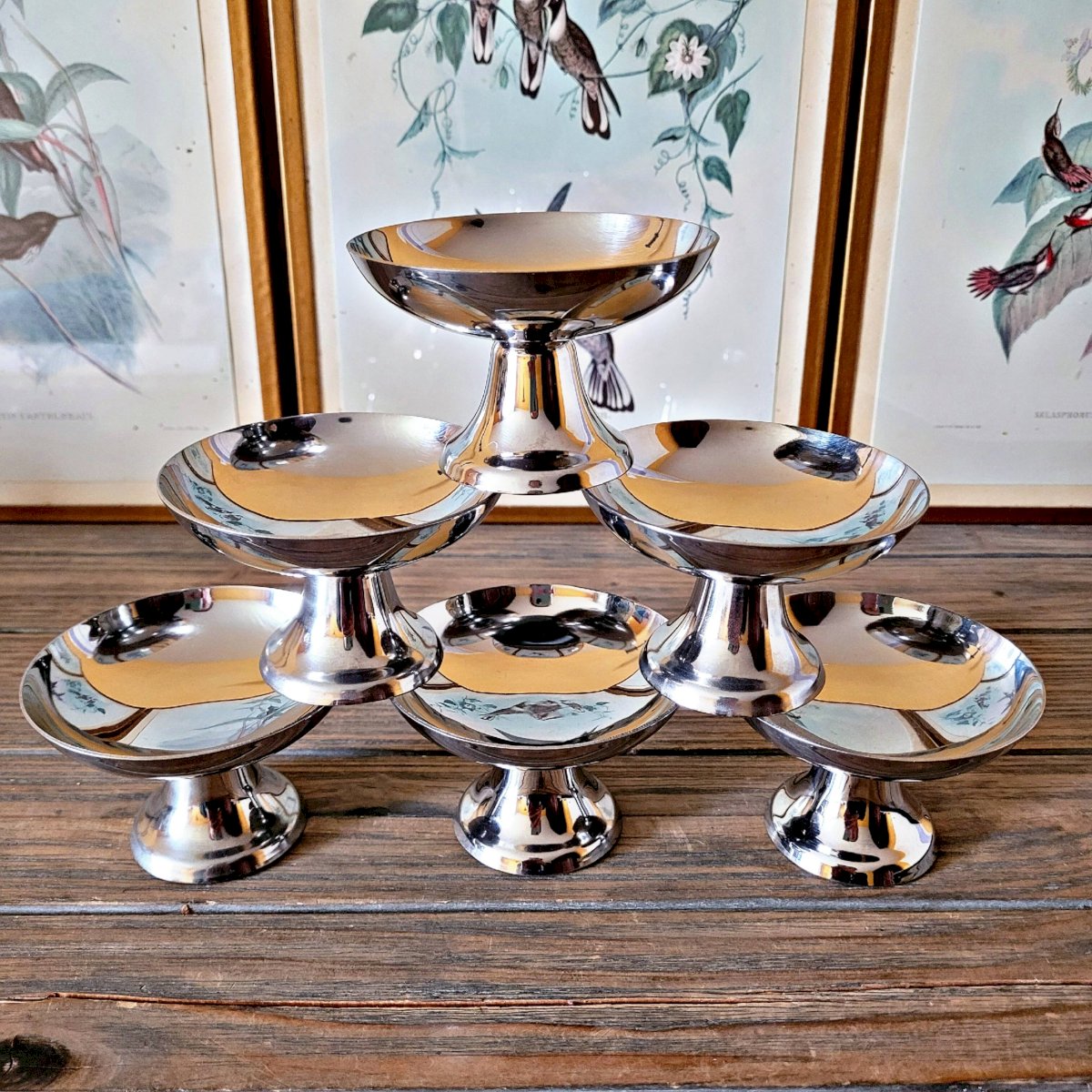 6 Coupes à glace inox vintage rondes Guy Degrenne – bistrot chic des années 70-80.Apportez une touche raffinée et élégante à vos desserts avec ce lot de 6 coupes à glace en inox des années 70-80 (lot de 6, 12 ou 18), parfaites pour recréer l’ambiance chic des bistrots d’époque.Idéales pour glaces, fruits, mousses ou verrines, ces coupes allient design rétro et sophistication intemporelle.Années 70-80.