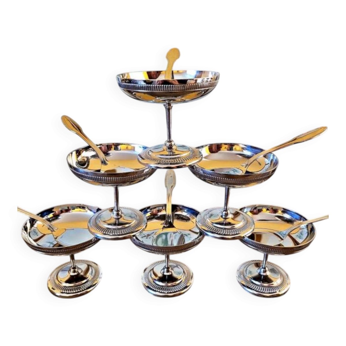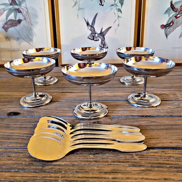 6 Coupes à glaces vintage inox (avec cuillères)