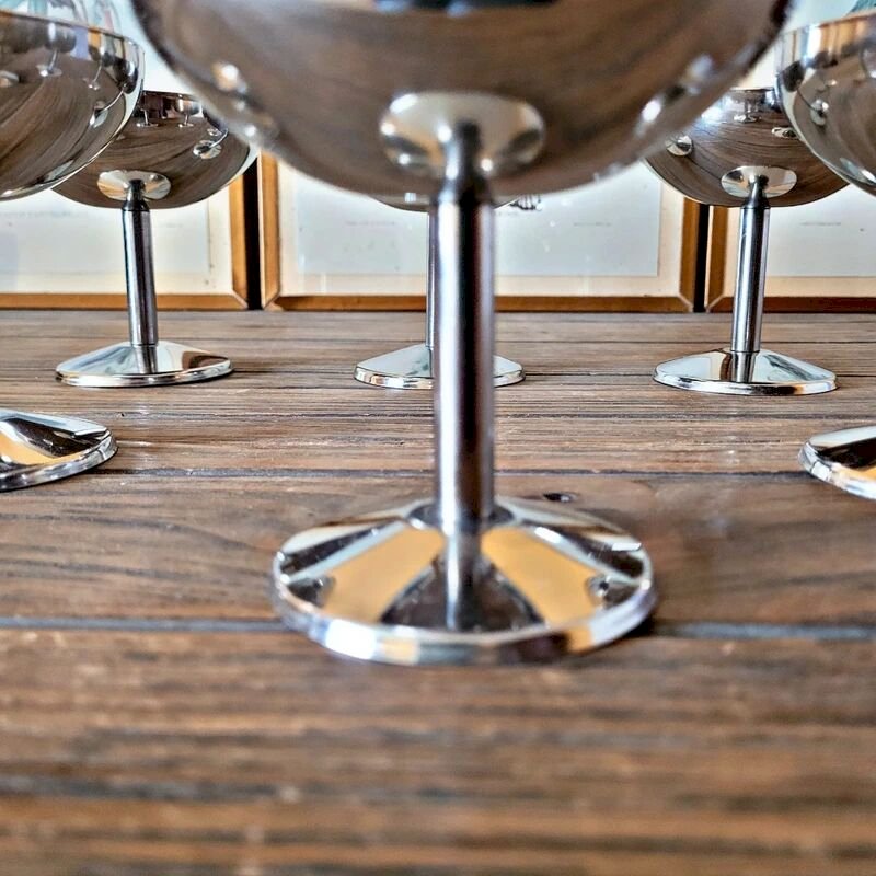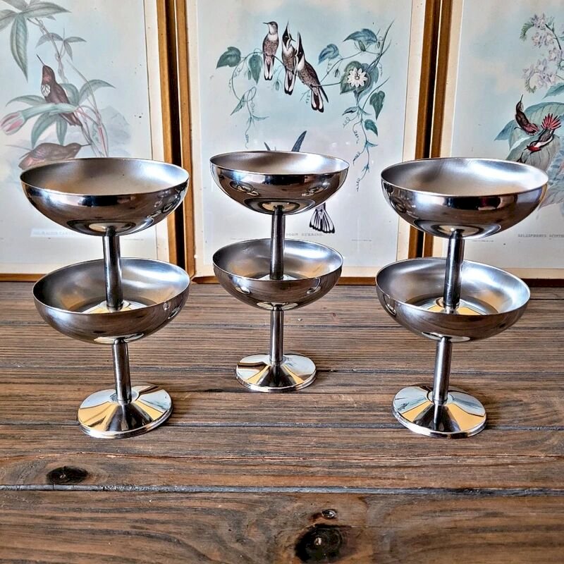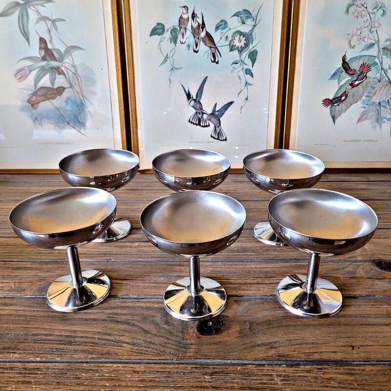 6 Coupes glaces dessert inox vintage année 70-80, forme ronde